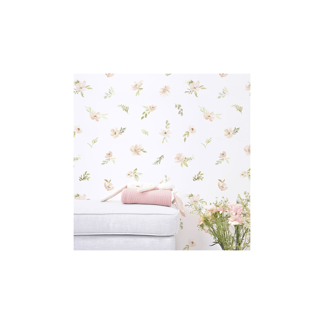 Le papier peint enfant Leurs Aquarelle enchantera votre décoration de chambre fille.