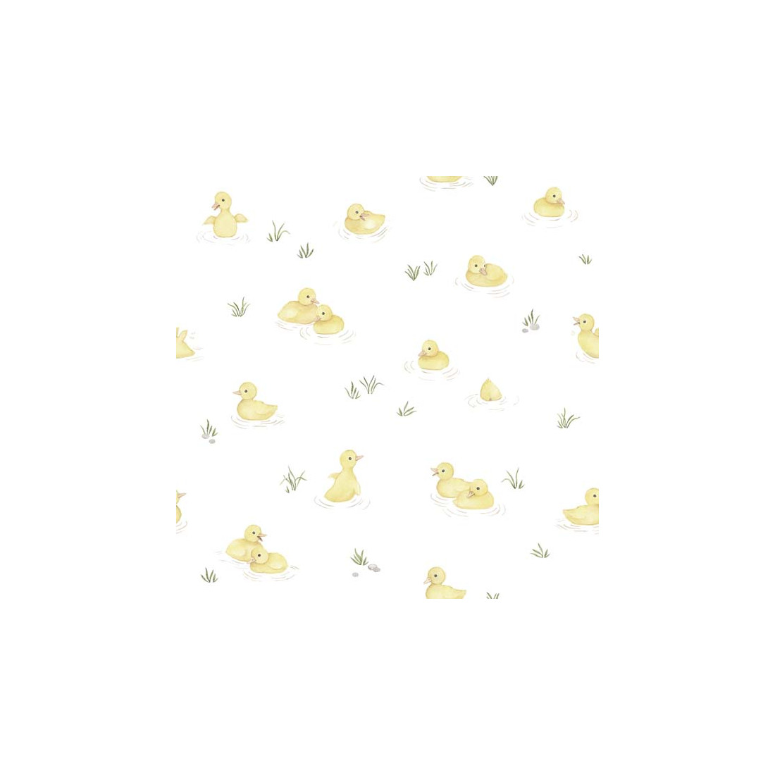 Ce papier peint vintage sera parfait pour une déco chambre bébé chic et tendance avec ces bébés canards jaunes tout mignon.