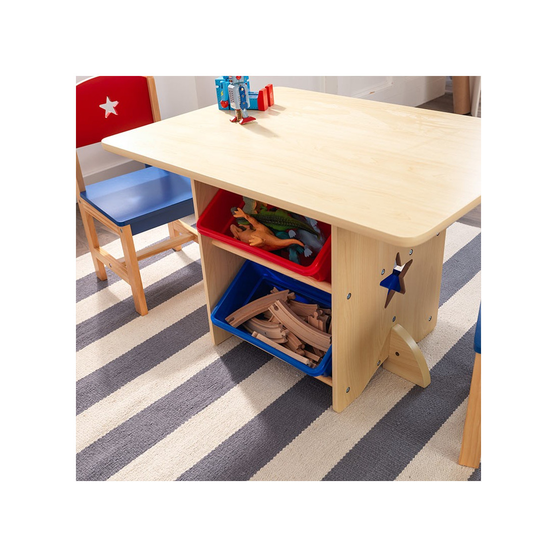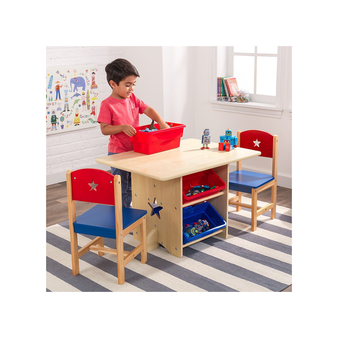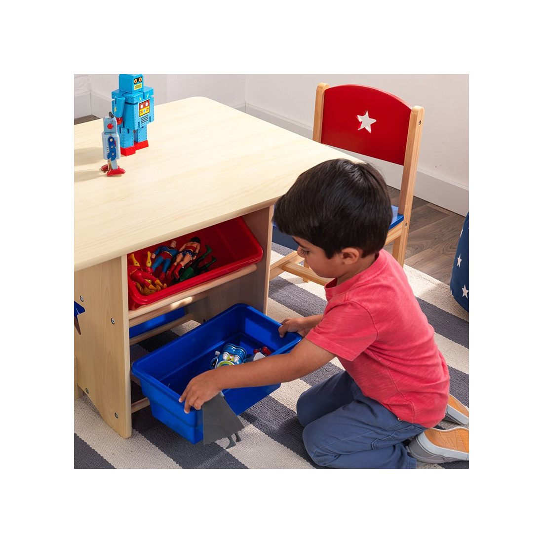 Un modèle plus garçons pour cette table de jeu en bois naturel marine et rouge et ses deux chaises. Nos garçons vont adorer pour jouer, dessiner, lire seul ou avec une ami. Très pratiques ces deux bacs de rangement ! Mobilier enfant idéal pour compléter l'aménagement de la chambre de votre enfant, ou pour une salle de jeux.