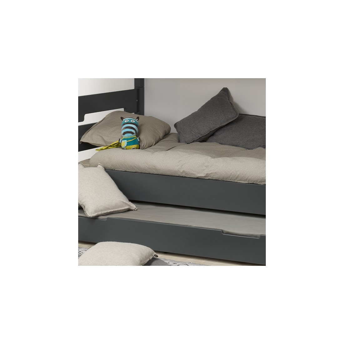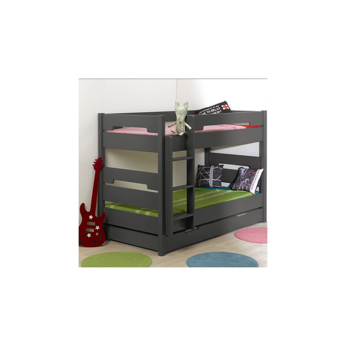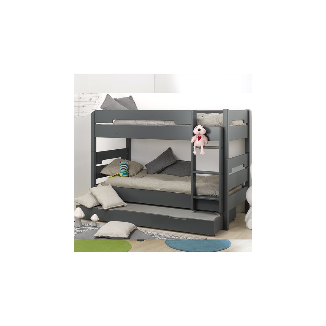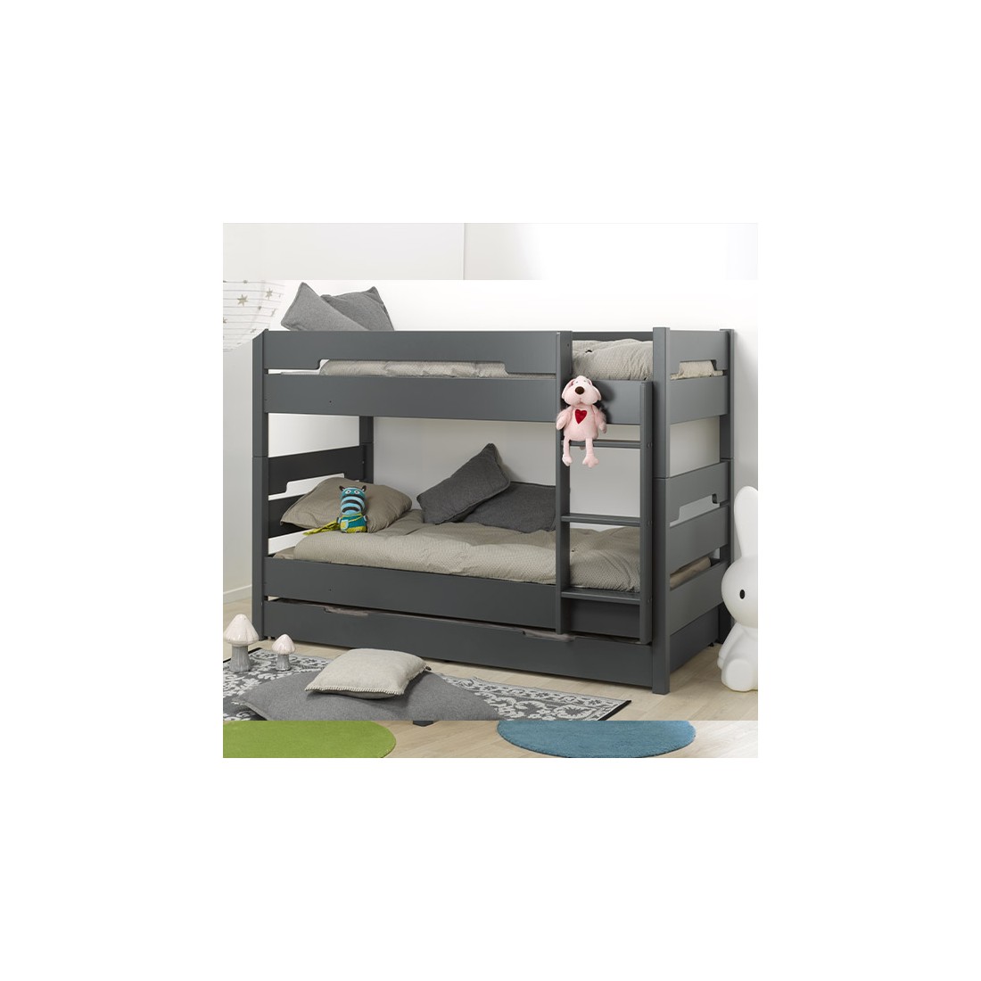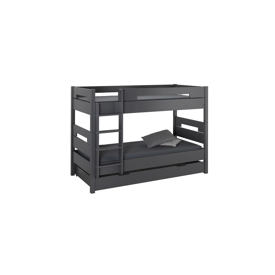 Lit Superposé 3 places avec Tiroir - Milo Gris Anthracite