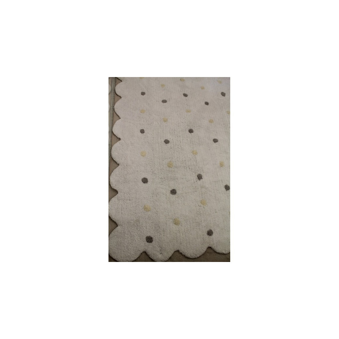 Tapis enfant coton lavable Galetta blanc de Lorena Canals. Originale cette forme de biscuit. On aurait envie de le croquer !! Trop joli avec ces pois gris et beige, ambiance de tendresse et de douceur assurée. Allez découvrir également les autres tapis de la gamme galetta. Ce tapis est idéal pour compléter la décoration de la chambre de votre enfant. Convient également à la chambre de bébé. Quelle bonne idée en cadeau de naissance ou d'anniversaire, vous ferez plaisir à coup sûr.