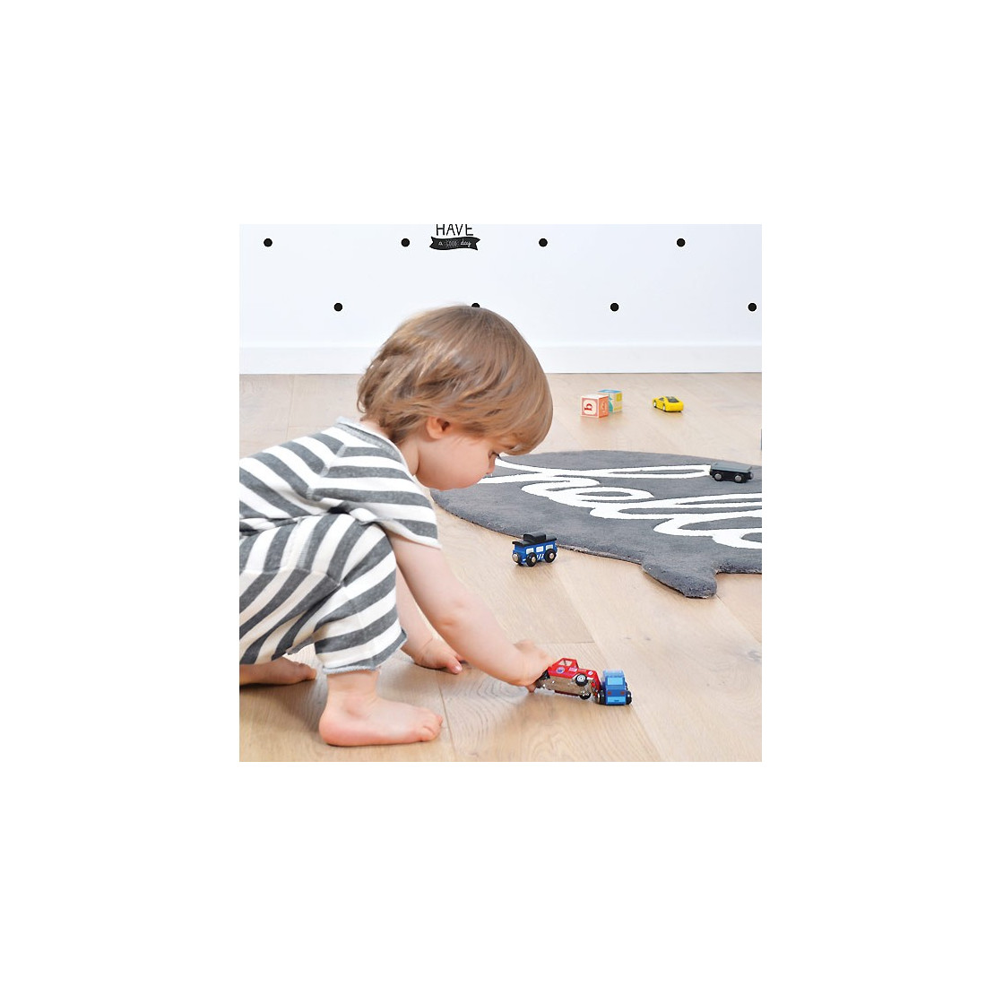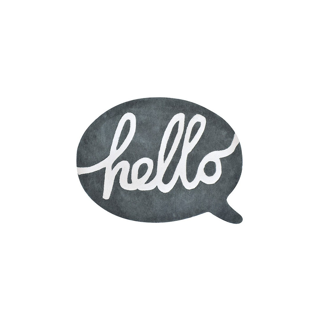 Tendance ce tapis enfant avec son message "Hello". En forme de bulle, gris et blanc, il trouvera de suite sa place dans une chambre d'enfant, garçon, fille ou bébé. Existe en modèle rose avec le message "Love", et pourquoi pas les associer !
