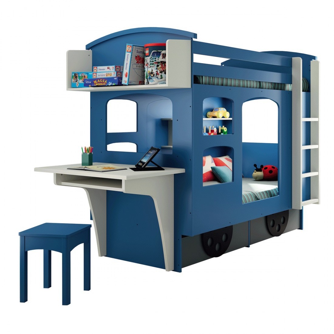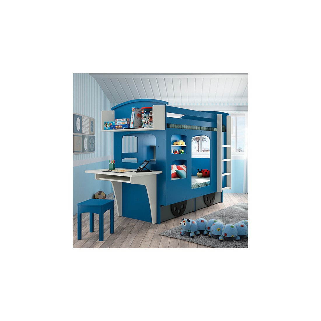 Voici un très beau lit superposé pour vos enfants, faites voyager leur imagination toutes les nuits dans ce beau lit wagon qui les conduira jusqu'au bout du monde.