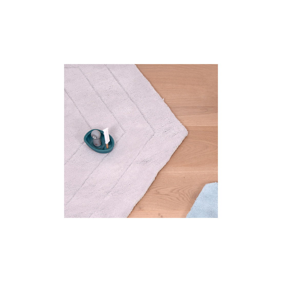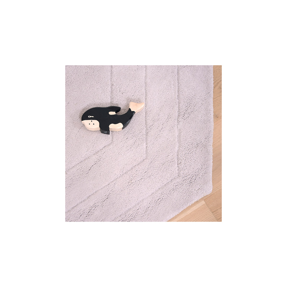 Une forme originale pour ce tapis enfant gris clair.