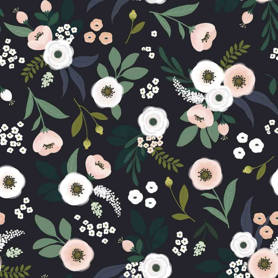 Découvrez ce papier peint à motif fleurs sur fond sombre. Un article de la collection Wonderland idéal pour une chambre d'enfant ou déco bébé fille.