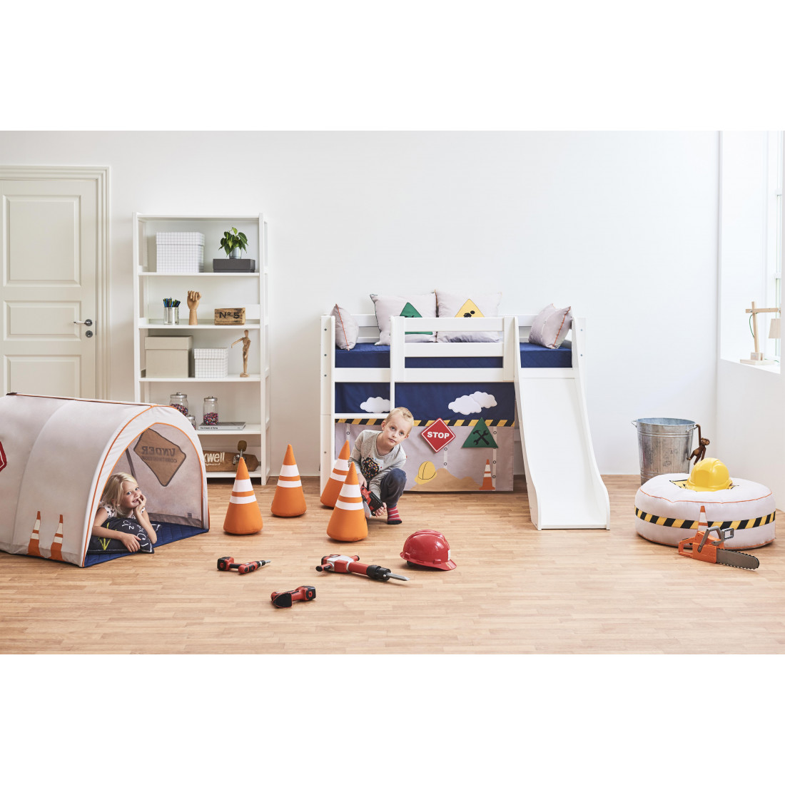 Les oreillers peuvent être utilisés avec d'autres oreillers ou dans le cadre d'une salle de thème de construction. Il y a beaucoup de textiles assortis de la construction de l'univers.