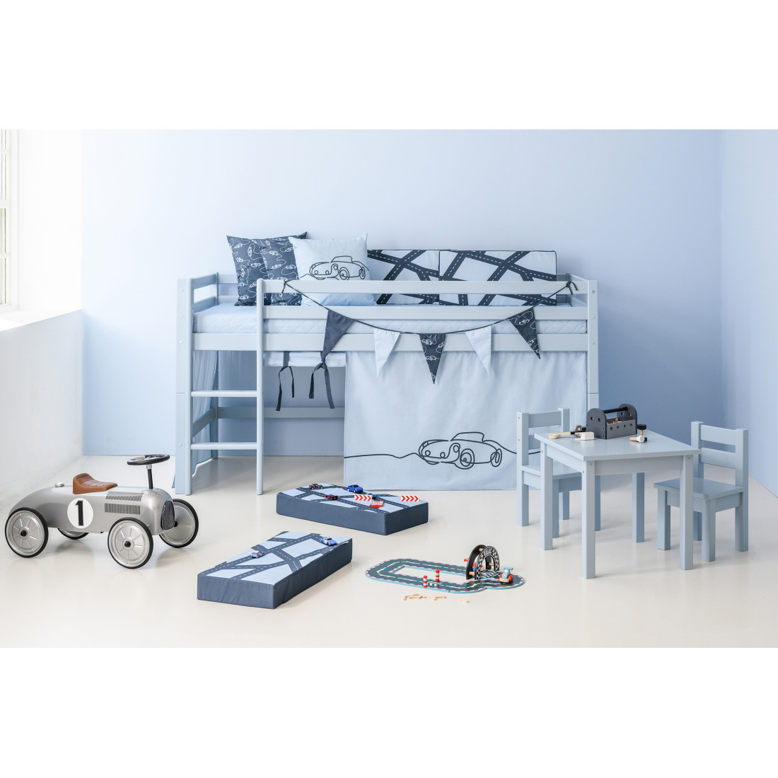 Avec l'oreiller décoratif bleu foncé (Orion bleue) des voitures Hoppekids, la chambre des enfants sera beaucoup plus confortable! Il porte l'élément de conception des voitures comme motif et correspond parfaitement aux autres accessoires de la série de voitures. Vous serez surpris par les utilisations possibles que vos enfants trouveront. En tant que dossier en lisant, comme coussin de siège pour jouer à l'aise sur le sol, pour un combat d'oreiller et bien sûr comme un bâtiment pour votre propre forteresse! Il n'y a pas de limites à la créativité de votre enfant. Il est préférable de combiner les différents modèles et possibilités de variété dans la chambre des enfants. Les oreillers sont 50x50cm et environ 15 cm d'épaisseur. La couverture est amovible et lavable à 30 ° Celsius. Belles nuances modernes de bleu offrent une expérience de couleur ton sur ton. Le motif, dessiné sans s'arrêter, est un véritable attrape et remplit chaque ventilateur de voiture avec joie. Les voitures sont la nouvelle collection pour tous ceux qui veulent quelque chose de simple et de sous-estimé, mais ne veut toujours pas faire de design élégant et élégant. "Il est absolument branché de travailler avec des modèles graphiques simples. La couleur a un impact majeur sur l'effet général », explique Susanne Nielsen de l'équipe de design. Le bleu clair des rideaux et des lancers, le bleu plus sombre du linge de lit et le mélange de couleurs d'oreillers et de fanions assure une excellente expérience de couleur dans la chambre des enfants.