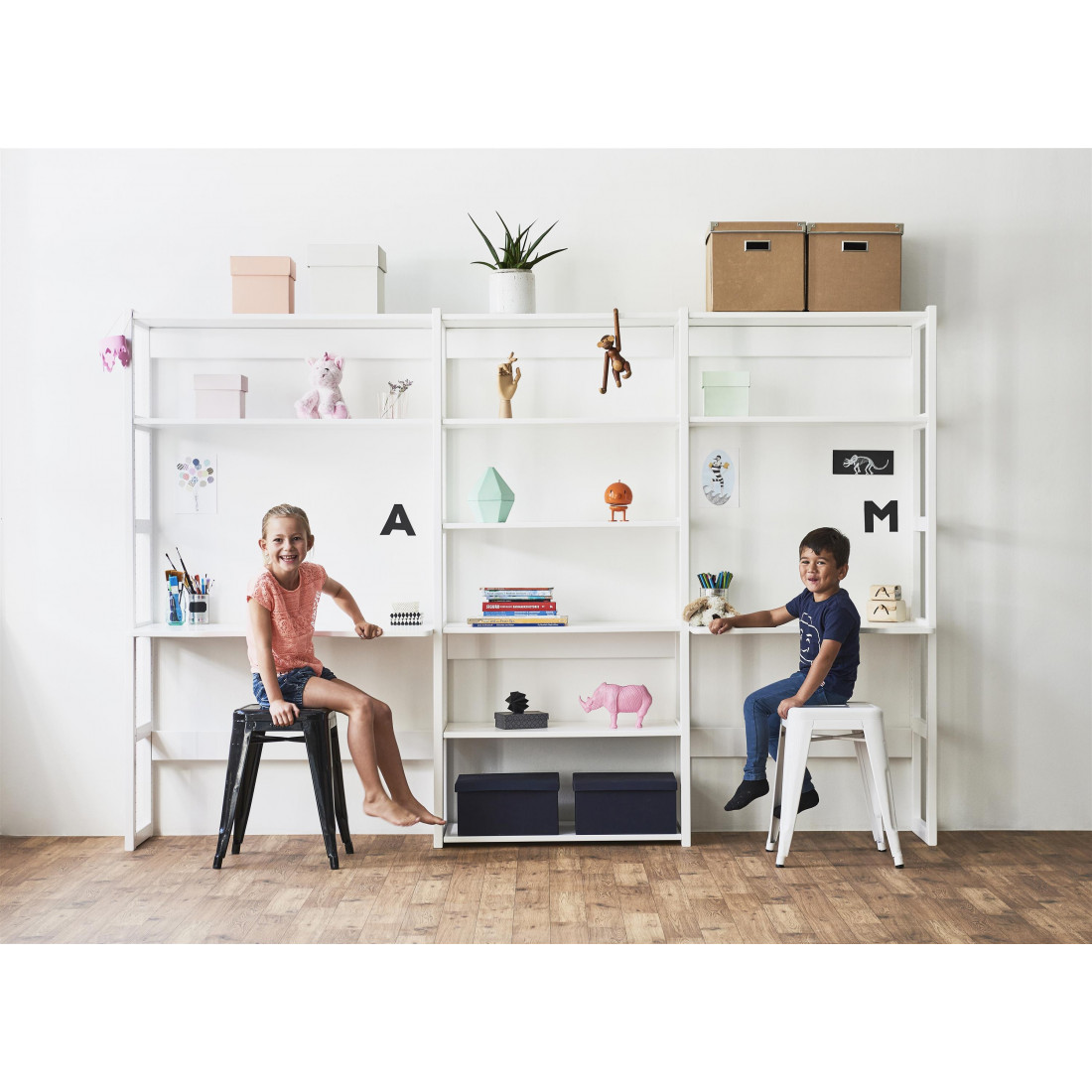 Accessoire à étage est disponible en deux tailles: 80 cm et 100 cm. Les étagères à étaler sont grandes et larges et peuvent stocker presque tout ce que vous trouverez dans une chambre pour enfants.
