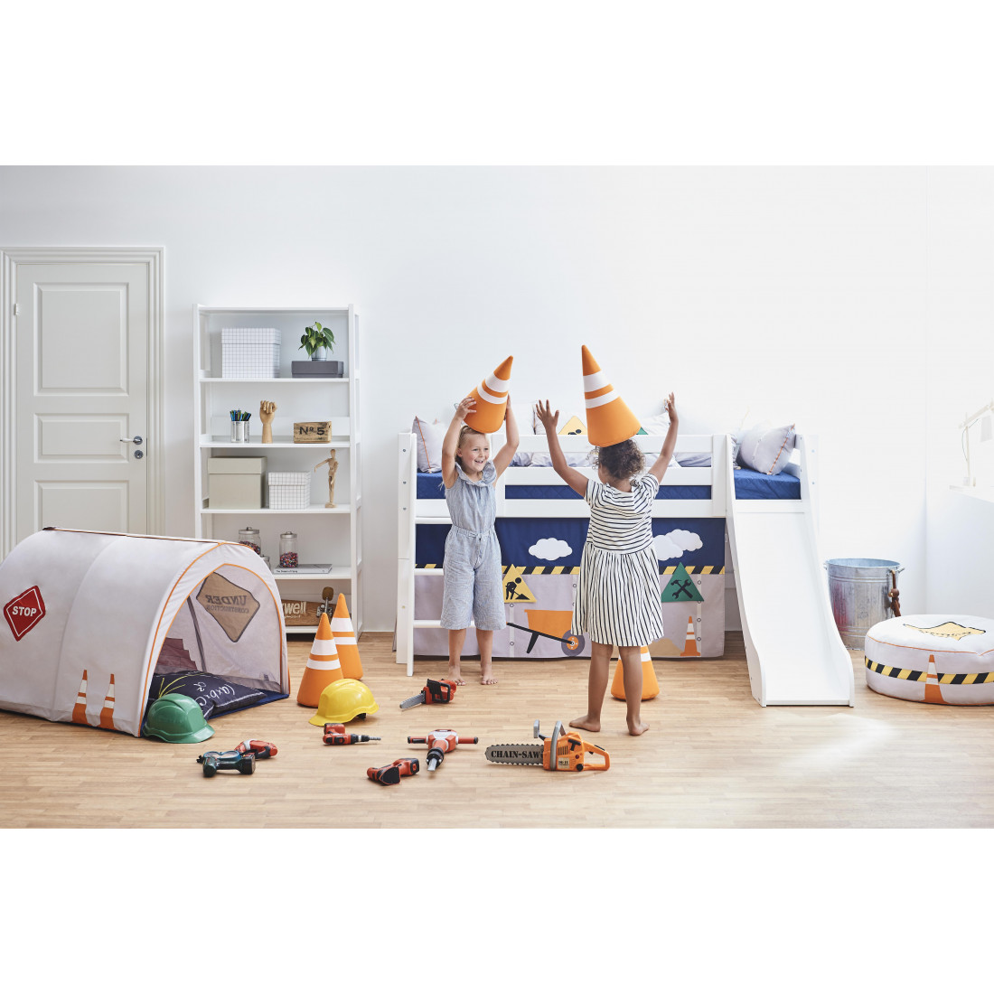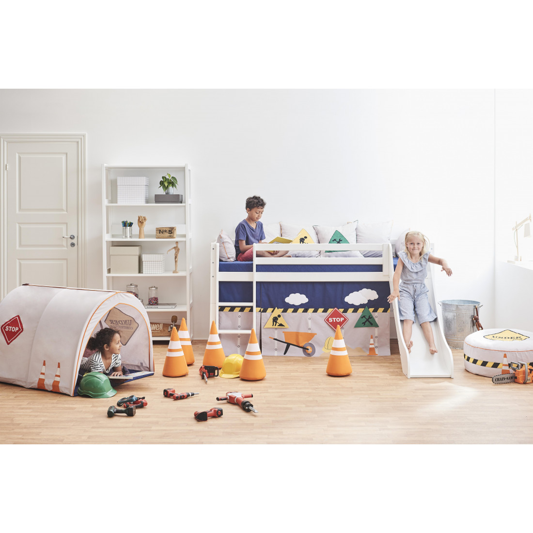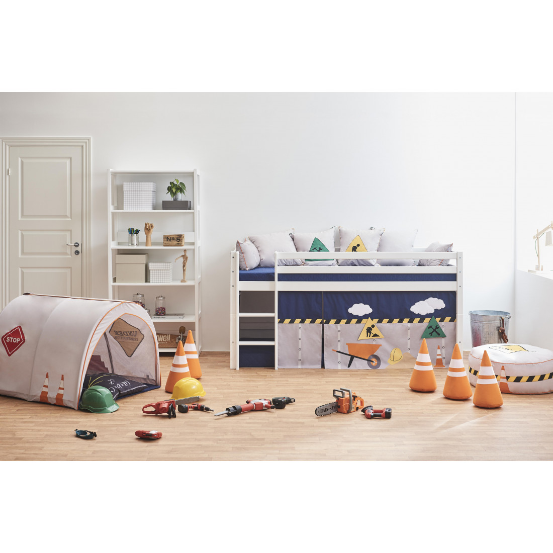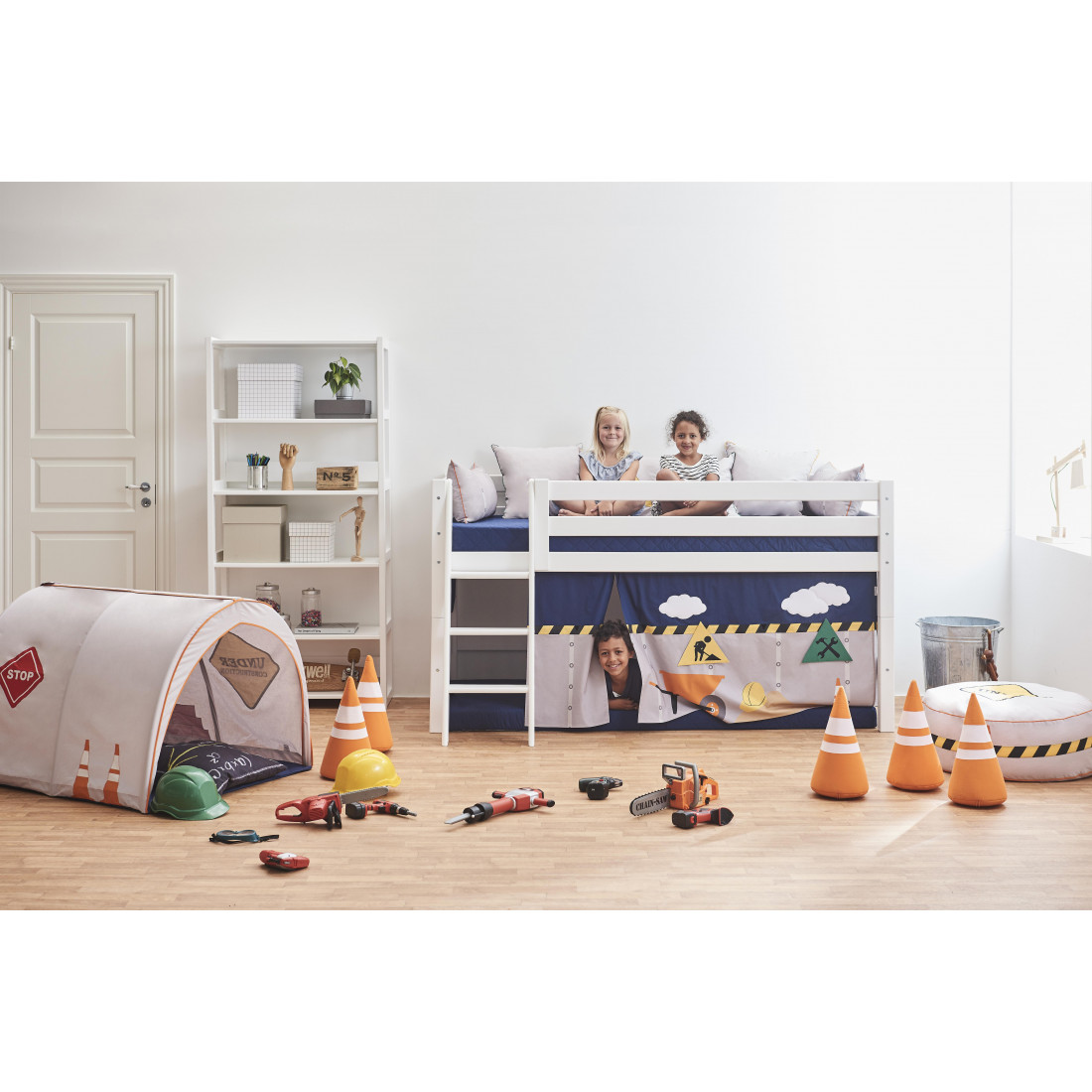 Le rideau crée une grotte confortable située sous le demi-lit haut, ce qui en fait l'endroit idéal pour la lecture ou lorsque votre enfant a besoin d'une pause du reste du monde. Décorer la grotte avec beaucoup de belles choses, telles qu'un matelas, des oreillers, des couvertures, des fêtes de fées et ainsi de suite.