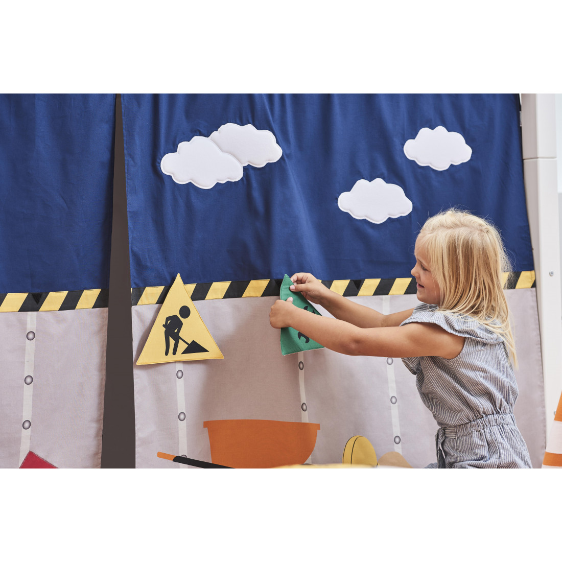 Le rideau semeur de la main de Hoppekids crée un monde magique de conte de fées dans la chambre des enfants. Lorsque vous attachez le rideau au lit, ce n'est plus un lit. Au lieu de cela, il s'agit d'un navire spatial, d'un château, d'une machine à coucher ou de ce que votre imgagination pourrait imaginer.