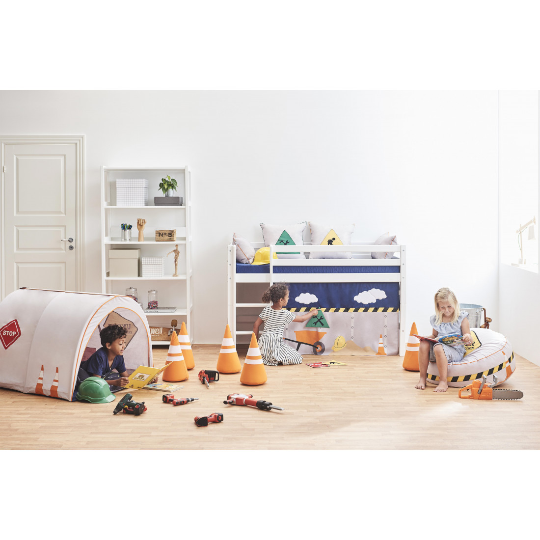 La chaise de sac de haricot a une couverture amovible et un remplissage à base de boules de styromousse. Il garde sa forme bien, mais est également facile pour les enfants encore plus petits de bouger.
