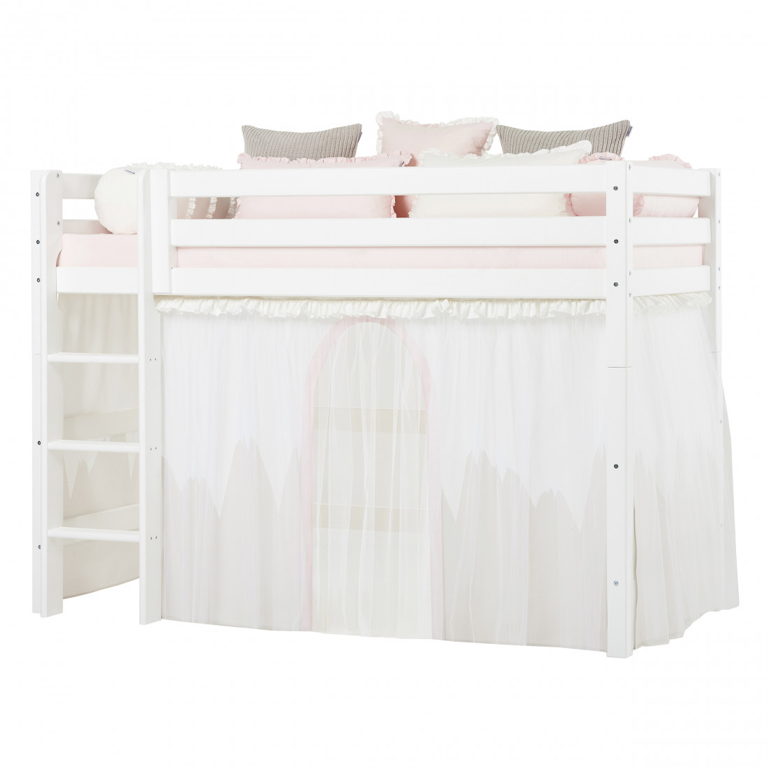 Le rideau crée une grotte confortable située au-dessous du grand lit haut, ce qui en fait l'endroit idéal pour le temps de jeu ou lorsque votre enfant a besoin d'une pause du reste du monde. Décorer la grotte avec beaucoup de belles choses, telles qu'un matelas, des oreillers, des couvertures, des fêtes de fées et ainsi de suite.