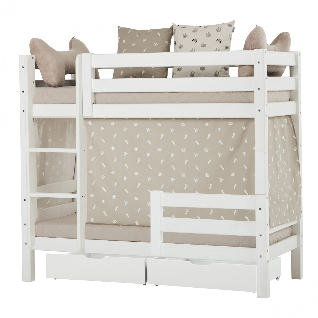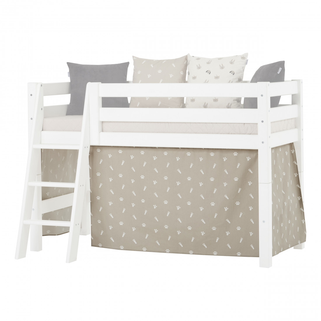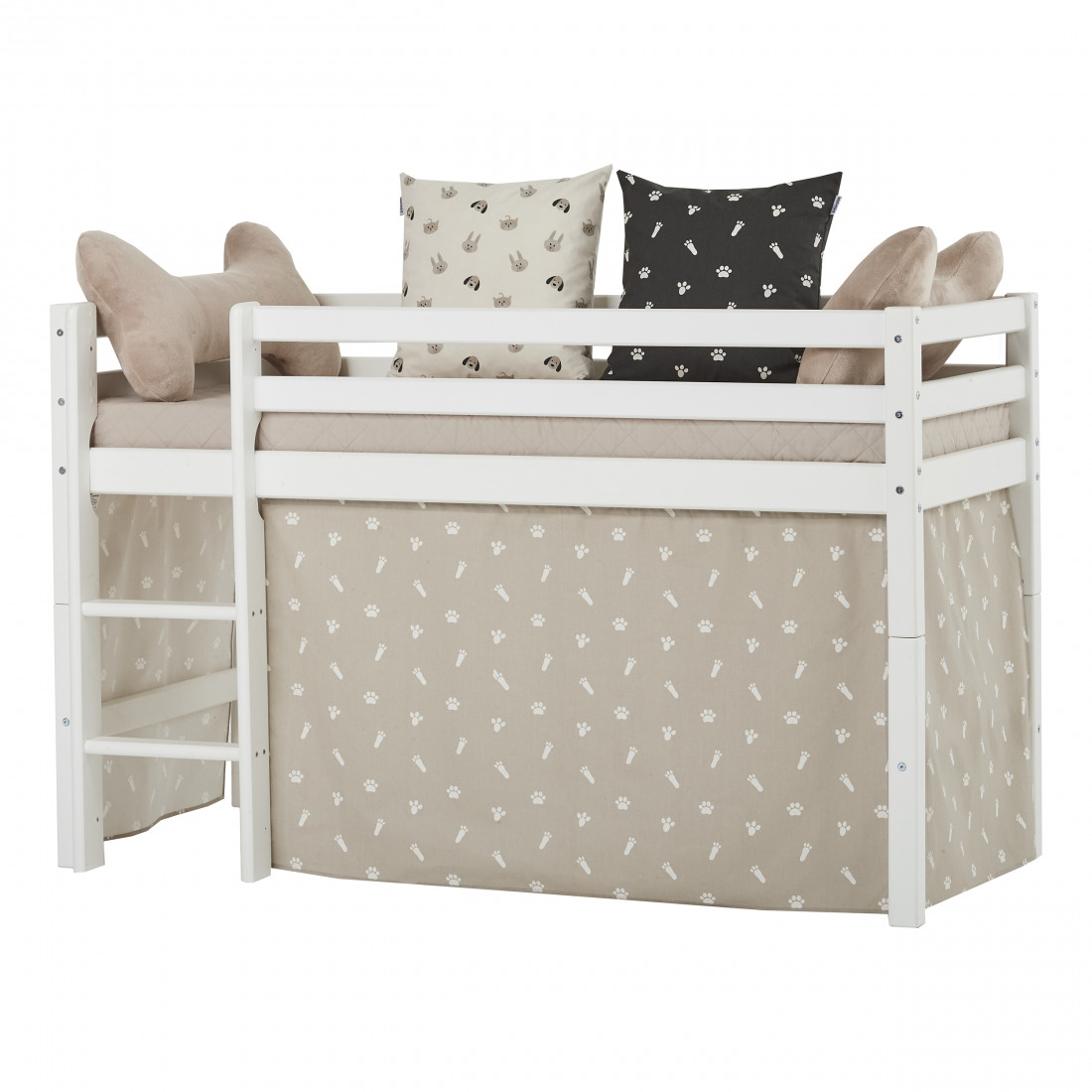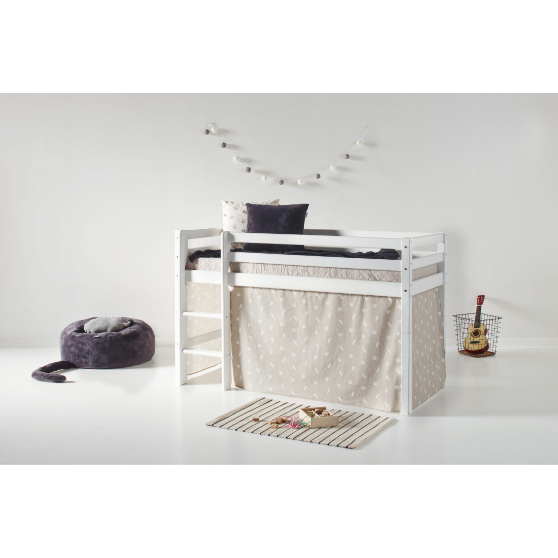 Le rideau convient au demihigh et aux lits superposés (70x160cm) des séries de base de base et de qualité supérieure de Hoppekids. Le rideau est constitué de coton certifié Ecotex et est lavable à 30 ° Celsius. Le rideau crée une petite grotte sous le lit comme une retraite et des secrets, comme espace de stockage ou pour jouer. Le rideau et les accessoires supplémentaires donnent des moyens simples et peu visibles de changer la pièce. Avec des coussins, jouez des tunnels et d'autres accessoires exclusifs, vous créez un merveilleux concept de chambre pour enfants, ce qui vous aide à donner à la pièce une structure et des suggestions humbles pour jouer. Avec Hoppekids Animaux, vous apportez la vie à la chambre des enfants! Le rideau de nuage d'argent avec les imprimés de la patte mignonne est exactement la chambre de certaines enfants. Chien et chat jouent le rôle de bon rôle dans les animaux domestiques, que ce soit comme motif de patte sur le provisoire et l'oreiller ou en tant qu'oussin de jeux et de haricot. Les multiples combinaisons de couleurs avec une couvre-lit maison, des rideaux, des oreillers et des accessoires font des animaux de compagnie une collection avec de nombreuses mesures de conception. Profitez des couleurs de tendance Gris gris, sans faille ou d'argent et créez une retraite familière pour vos enfants.
