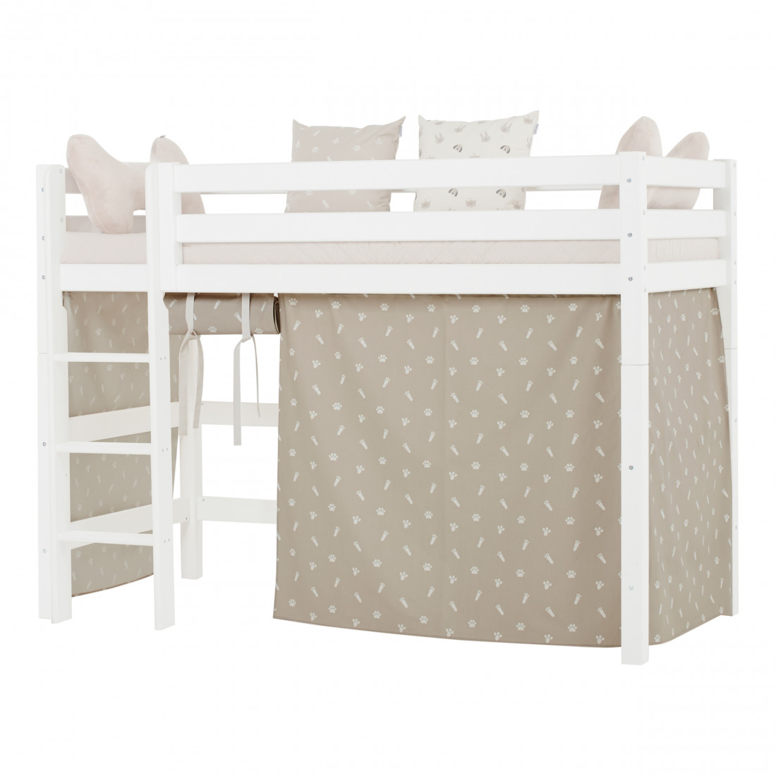 Le rideau pour les lits mid hale dans le format 90x200 cm crée un monde d'aventure magique au milieu de la chambre des enfants. Soudain, le lit est le point de départ des voyages et des histoires passionnantes. Le rideau de lit crée également une grotte confortable sous le lit mi-haut idéal pour jouer ou lorsque votre enfant a besoin d'une petite pause du reste du monde. En raison de la hauteur sous les lits entre les enfants mi-hauts, vous pouvez installer la zone avec matelas, chaînes de fanion, éclairage à LED, oreillers et bien plus encore. Ou vous pouvez créer une zone d'artisanat ou un endroit pour écrire et étudier sous le lit. Avec Hoppekids Animaux, vous apportez la vie à la chambre des enfants! Le rideau de nuage d'argent avec les imprimés de pattes mignonnes est parfait pour la chambre des enfants. Chien et chat jouent le rôle de bon rôle dans les animaux domestiques, que ce soit comme motif de patte sur le provisoire et l'oreiller ou en tant qu'oussin de jeux et de haricot. Les multiples combinaisons de couleurs avec une couvre-lit maison, des rideaux, des oreillers et des accessoires font des animaux de compagnie une collection avec de nombreuses mesures de conception. Profitez des couleurs tendances grises en gris gris, vêtis ou d'argent et créez une retraite familière pour vos enfants.
