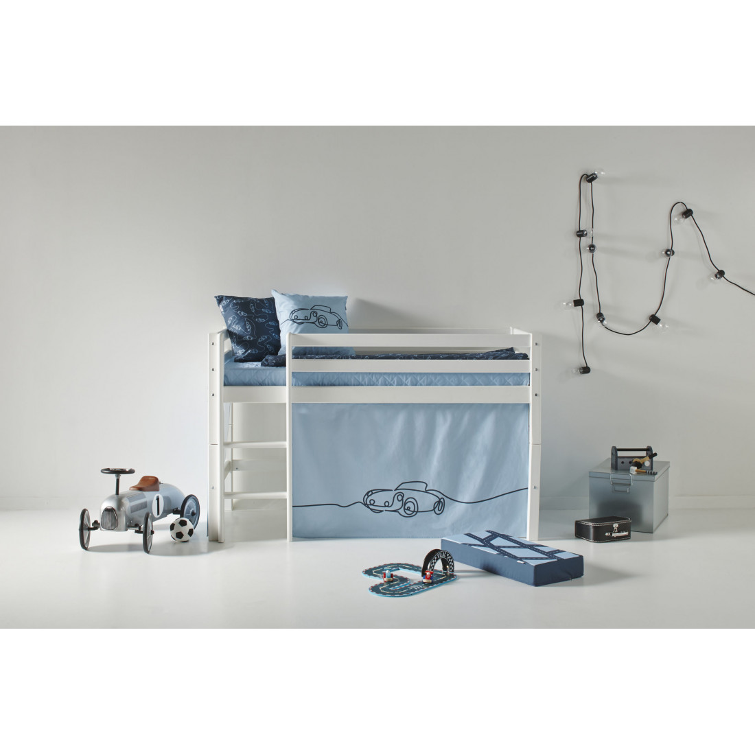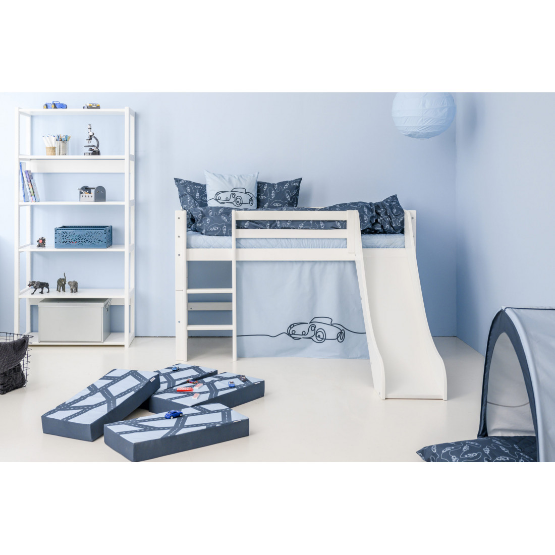 Le tapis de jeu épais rembourré est idéal comme un dossier ou de suivre les rues avec des voitures. Les voitures jouent pour tous les enfants qui aiment les voitures. Le tapis de jeu a un format de 30x65x9cm. Belles nuances modernes de bleu offrent une expérience de couleur ton sur ton. Le motif, dessiné sans s'arrêter, est un véritable attrape et remplit chaque ventilateur de voiture avec joie. Les voitures sont la nouvelle collection pour tous ceux qui veulent quelque chose de simple et de sous-estimé, mais ne veut toujours pas faire de design élégant et élégant. "Il est absolument branché de travailler avec des modèles graphiques simples. La couleur a un impact majeur sur l'effet général », explique Susanne Nielsen de l'équipe de design. Le bleu clair des rideaux et des lancers, le bleu plus sombre du linge de lit et le mélange de couleurs d'oreillers et de fanions assure une excellente expérience de couleur dans la chambre des enfants.