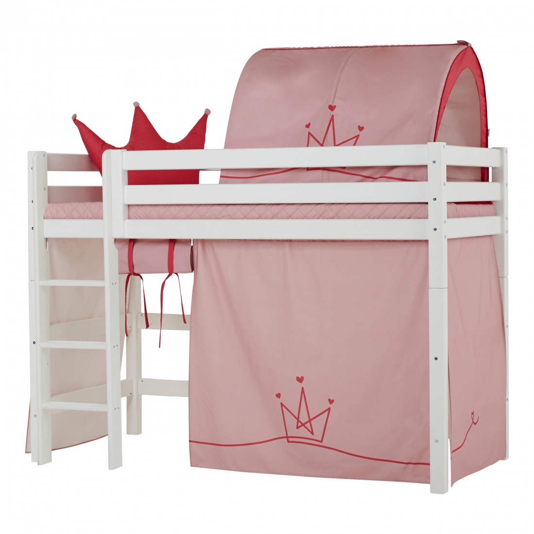 Les tunnels de jeu et de lit de Hoppekids peuvent être utilisés de manière flexible. Soit au lit comme une petite grotte pour se cacher et se sentir en sécurité ou comme un tunnel de jeu pratique. Grâce au plancher stable, le tunnel de lecture maintient sa forme et résiste également de plus grandes charges lors de la lecture. Le tunnel de lit et de jeu est de 102 cm de long, de 90 cm de large et de 73 cm de haut. En tant que tunnel de lit, le matelas standard de 90x200cm est simplement poussé à travers le tunnel. La rose pâle et la rose baroque sont les deux couleurs de tendance pour les princesses partout dans le monde. Un concept fort, l'autre délicat et ensemble en tant que concept de ton-ton dans la collection de princesse Hoppekids imbattable. Ajoutez à cela le dessin de la ligne avec la couronne et nous avons un classique moderne de design pour la chambre des enfants. Simple, élégant et pourtant incontestablement avec une espèce enjouée, de sorte que la chambre des enfants se sent immédiatement chaude. Que ce soit combiné avec des lits de couleur ou avec des lits classiques pour enfants blancs, la princesse a toujours fière allure. Les coussins, la couverture du lit de la maison, les rideaux et le tunnel de jeu tout conviennent parfaitement. Un petit univers pour votre princesse.