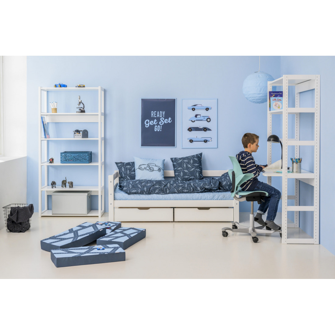 La couverture du matelas matelassé dans le bleu de rêve pour les matelas d'une hauteur de 12 cm et la dimension 70x160 cm a une fermeture à glissière sur trois côtés, ce qui facilite la suppression rapide et rapide. Apportez un peu plus de couleur dans la chambre des enfants avec une couverture matelassée colorée et protège tout le matelas. Bien sûr, vous pouvez répandre une feuille sur le matelas avec une couverture si votre enfant veut dormir dessus. La couverture est composée de coton pur 100%, certifié selon Oeko-Tex 100.