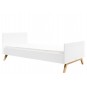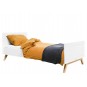 Lit moderne pour adolescent de la série Fenna, avec des lattes en bois. La combinaison d'un sommier en hêtre blanc et naturel donne au lit un aspect contemporain. Combinez ce lit avec les autres meubles de la série Fenna.