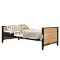 Ce lit de 90 x 200 cm de la série Job est exécuté dans une combinaison robuste de noir mat et de bois plaqué.