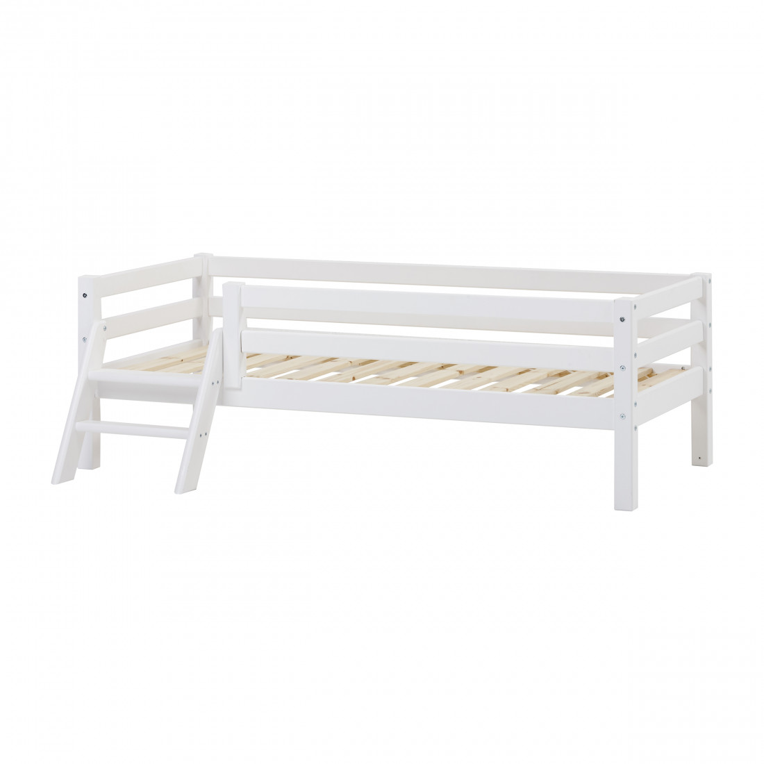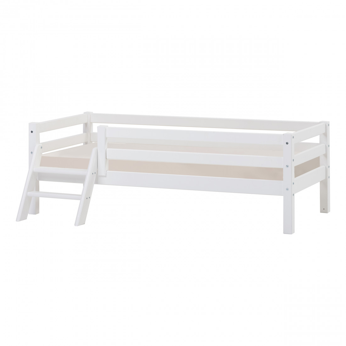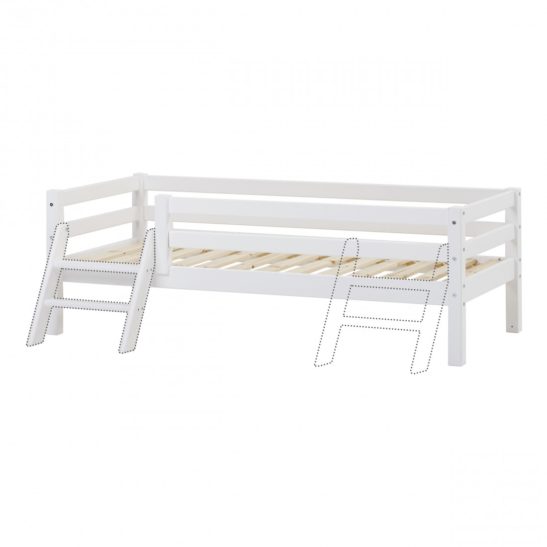 Lit junior 70x160cm avec rail d'échelle et de sécurité, blanc