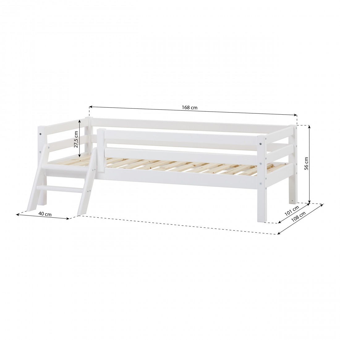 Hoppekids Junior Lit Taille de la taille 70x160 cm est l'étape idéale entre un lit bébé et un grand lit car la petite échelle facilite la grimper au lit et le rail de sécurité vous donne un sommeil confortable et sûr.