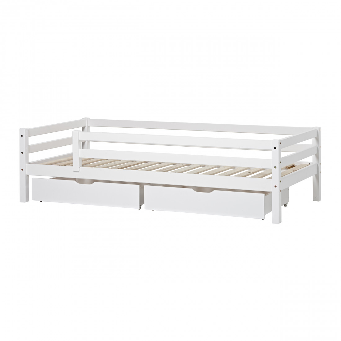 Si le lit est utilisé seul, c'est le lit de jour idéal ou le canapé-lit. Sous le lit, vous trouverez beaucoup de place pour le stockage - par ex. Avec les grands tiroirs spacieux sur roues de Hoppekids.