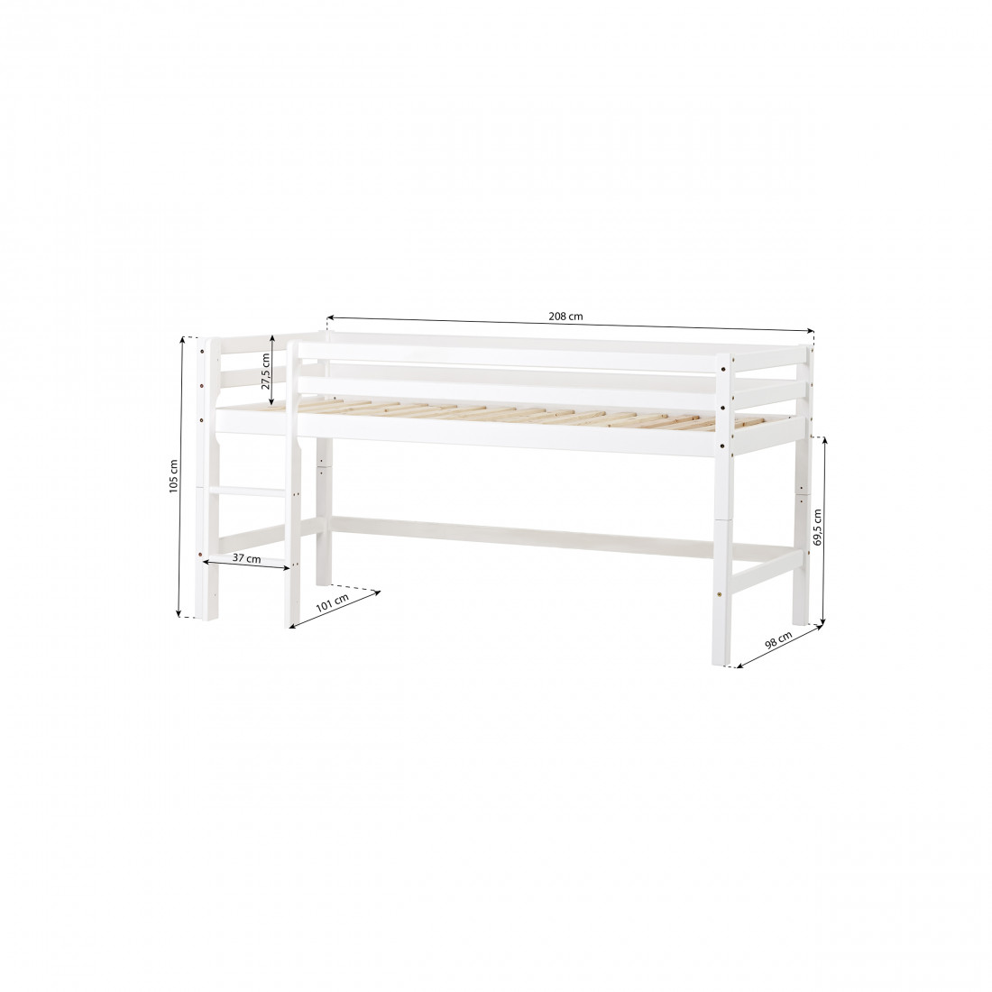 Une demi-lit de base taille 90x200 cm de Hoppekids est un lit bon et pratique. Il peut s'intégrer même à la plus petite pièce et à économiser une partie de l'espace de sol précieux pour la zone de jeu ou le stockage. La hauteur de 105 cm est géniale parce que l'enfant doit grimper au lit, mais ce n'est pas si élevé que cela pourrait se sentir dangereux.