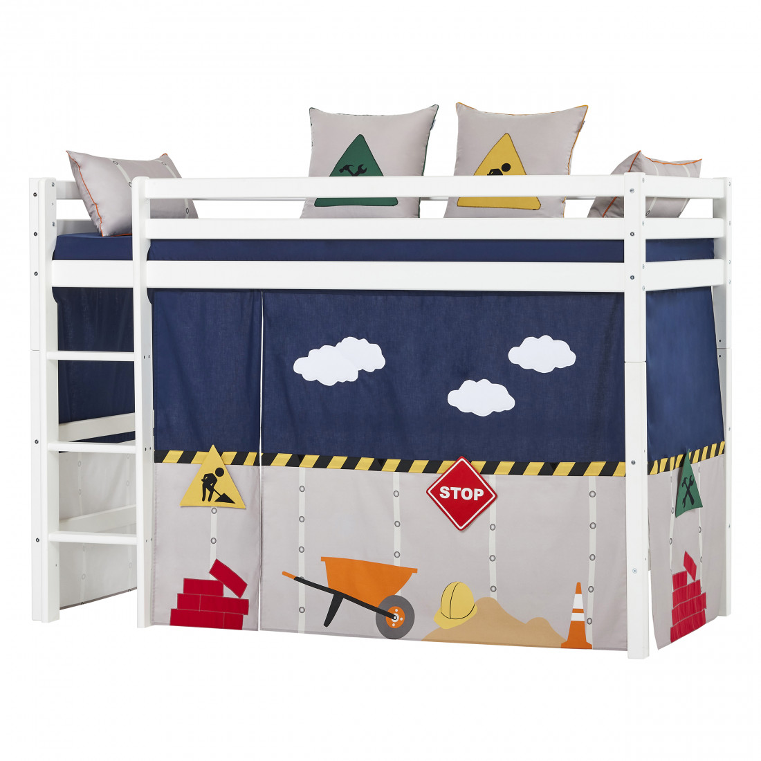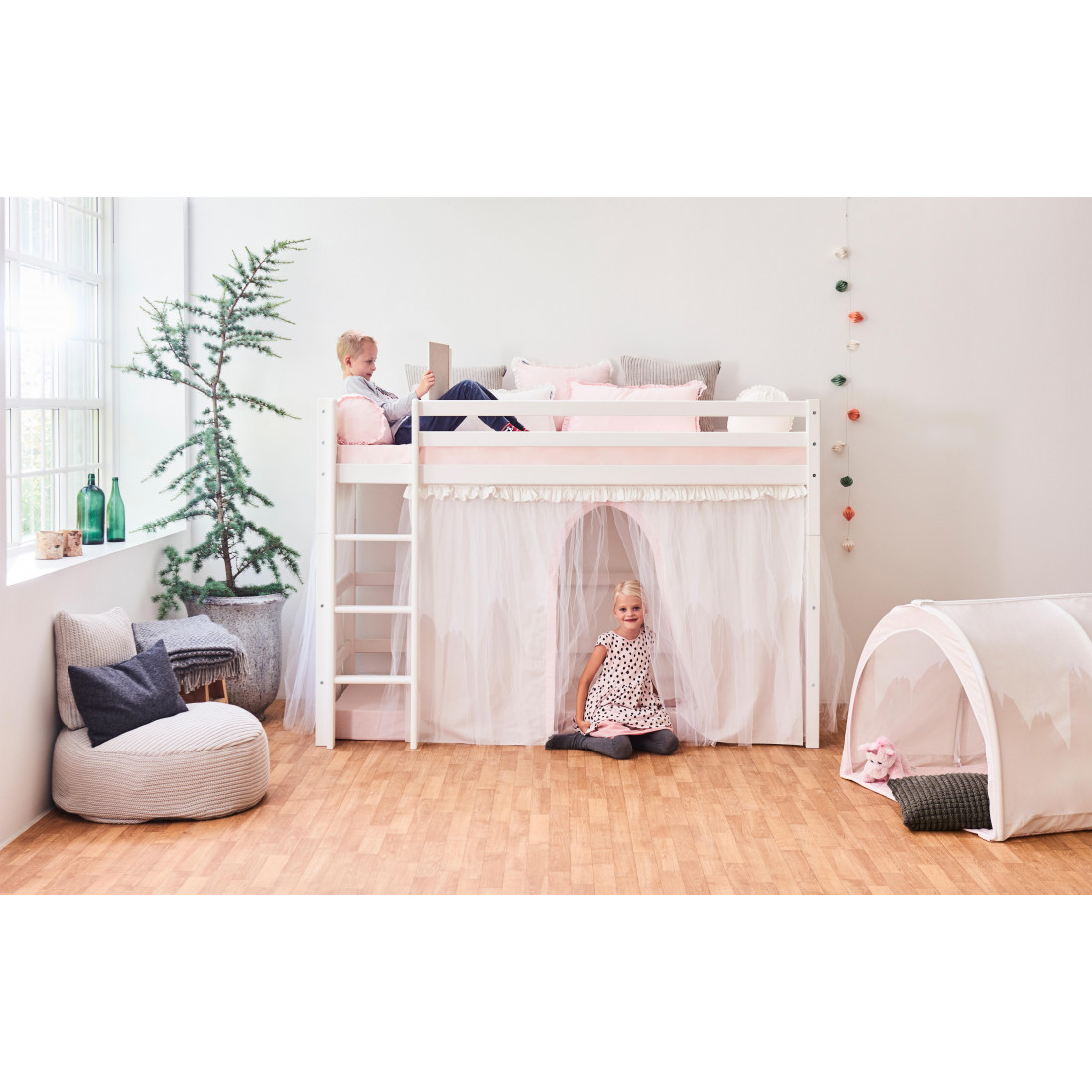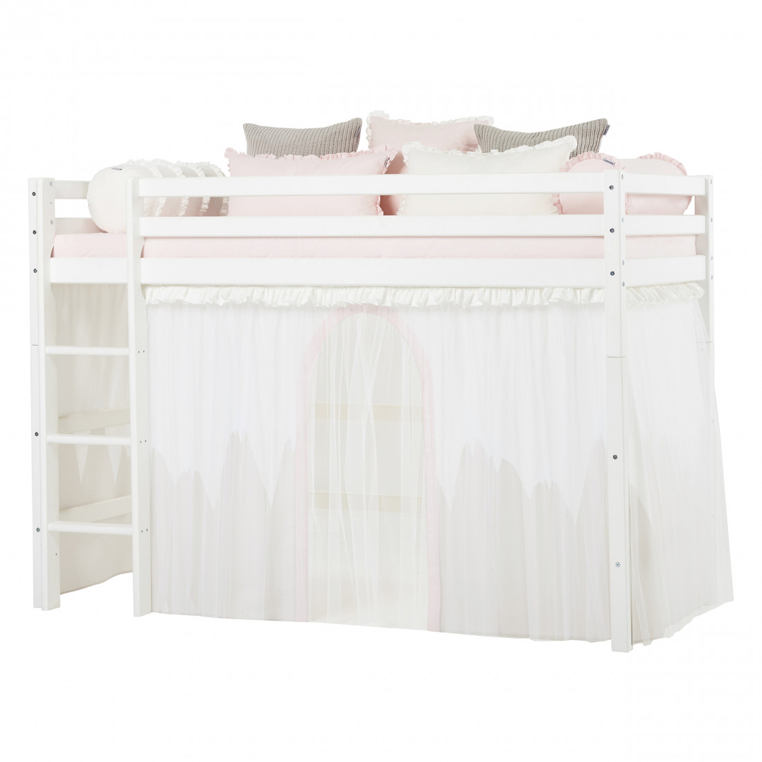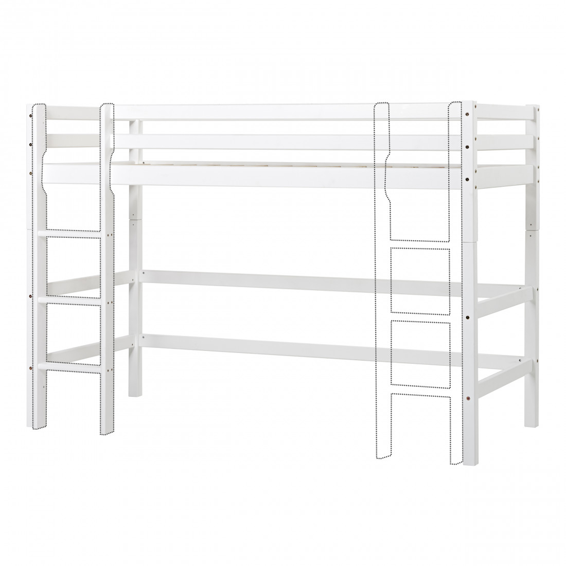 Taille de lit haute haute taille 90x200 cm de Hoppekids est un lit bon et pratique. Il peut s'intégrer même à la plus petite pièce et à économiser une partie de l'espace de sol précieux pour la zone de jeu ou le stockage. Avec une hauteur de 108 cm sous le lit, il y a beaucoup de place pour le rangement, une grotte de luxe ou peut-être une cuisine de jeux avec une salle à manger.