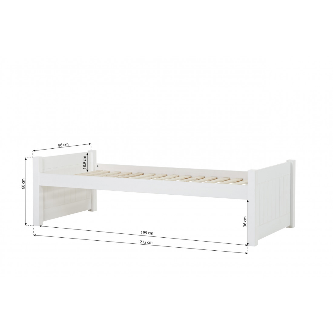 Un rail de sécurité amovible est également disponible. Cela fait du lit une grande étape du lit bébé. Le rail de sécurité peut être retiré pendant la journée ou fixé au lit en utilisant des vis. Les vis sont placées à l'intérieur du lit - laissant l'extérieur exempt de marques visibles.