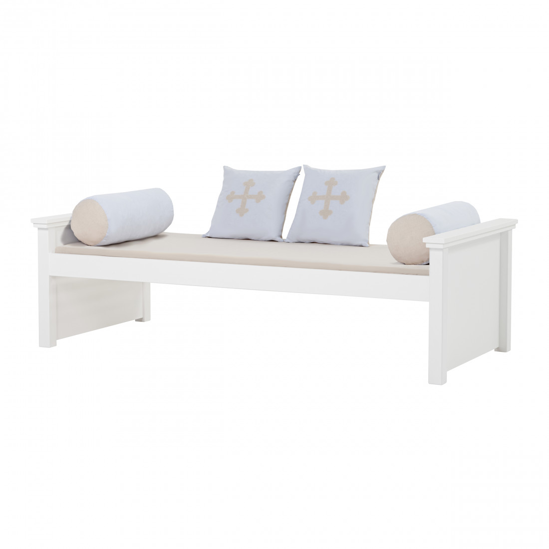 Un rail de sécurité amovible est également disponible. Cela fait du lit une grande étape du lit bébé. Le rail de sécurité peut être retiré pendant la journée ou fixé au lit en utilisant des vis. Les vis sont placées à l'intérieur du lit - laissant l'extérieur exempt de marques visibles.