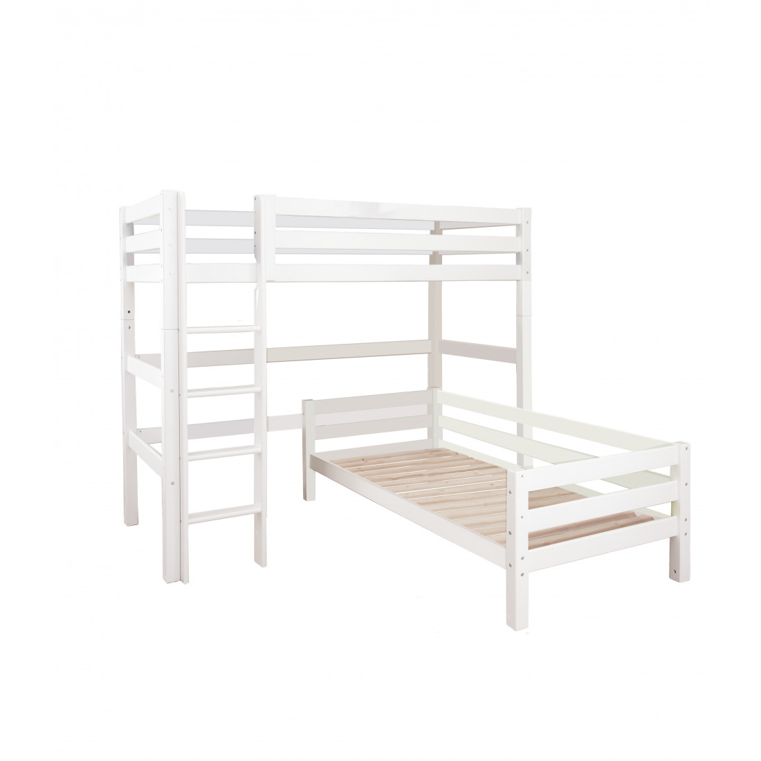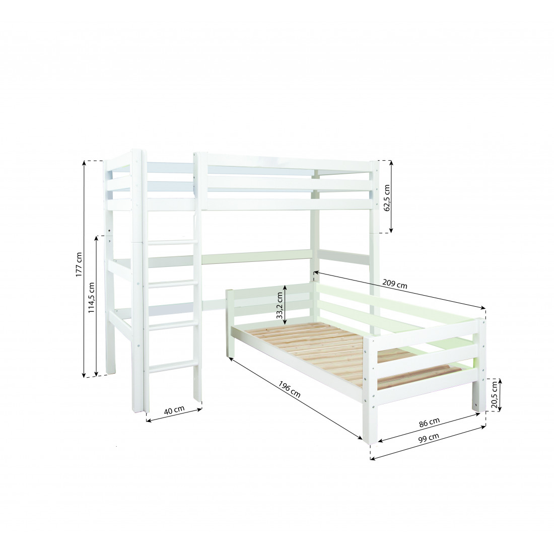 Le sommeil élevé est parfait pour le plus grand enfant, car vous pouvez utiliser l'espace situé sous la zone de jeu, l'espace de travail ou le stockage. Le lit junior est parfait pour les frères et sœurs plus petits, comme un lit de jour ou comme un lit.