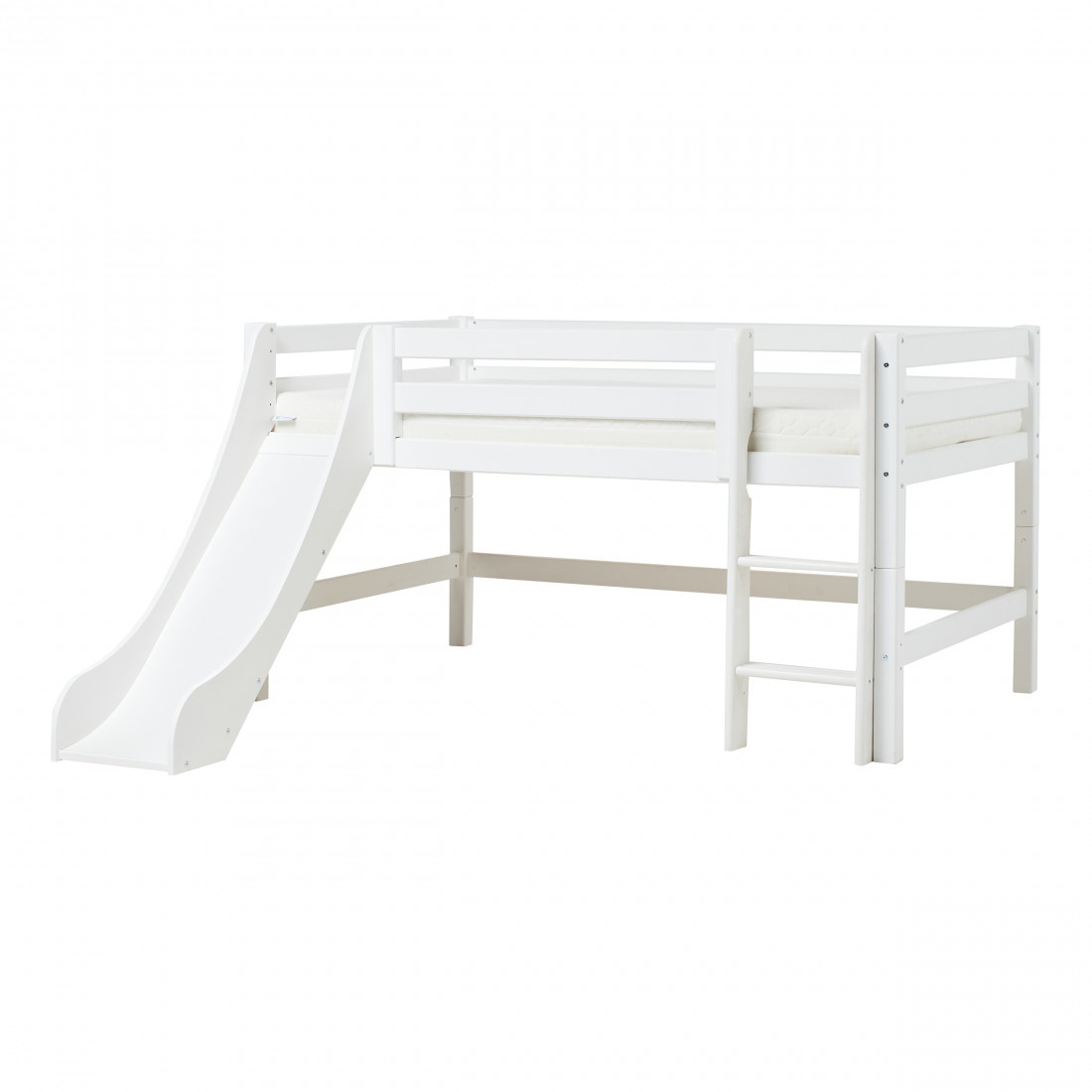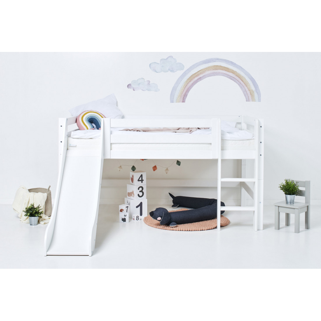 lit mezzanine haut avec toboggan et échelle 120 x 200 - Blanc