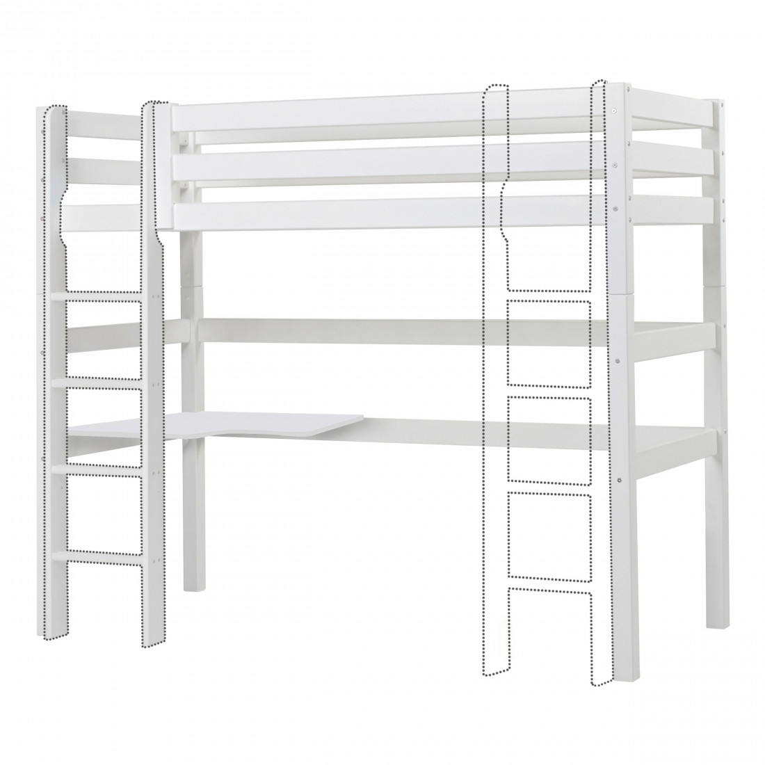 L'échelle peut être montée en gauche ou à droite du lit.