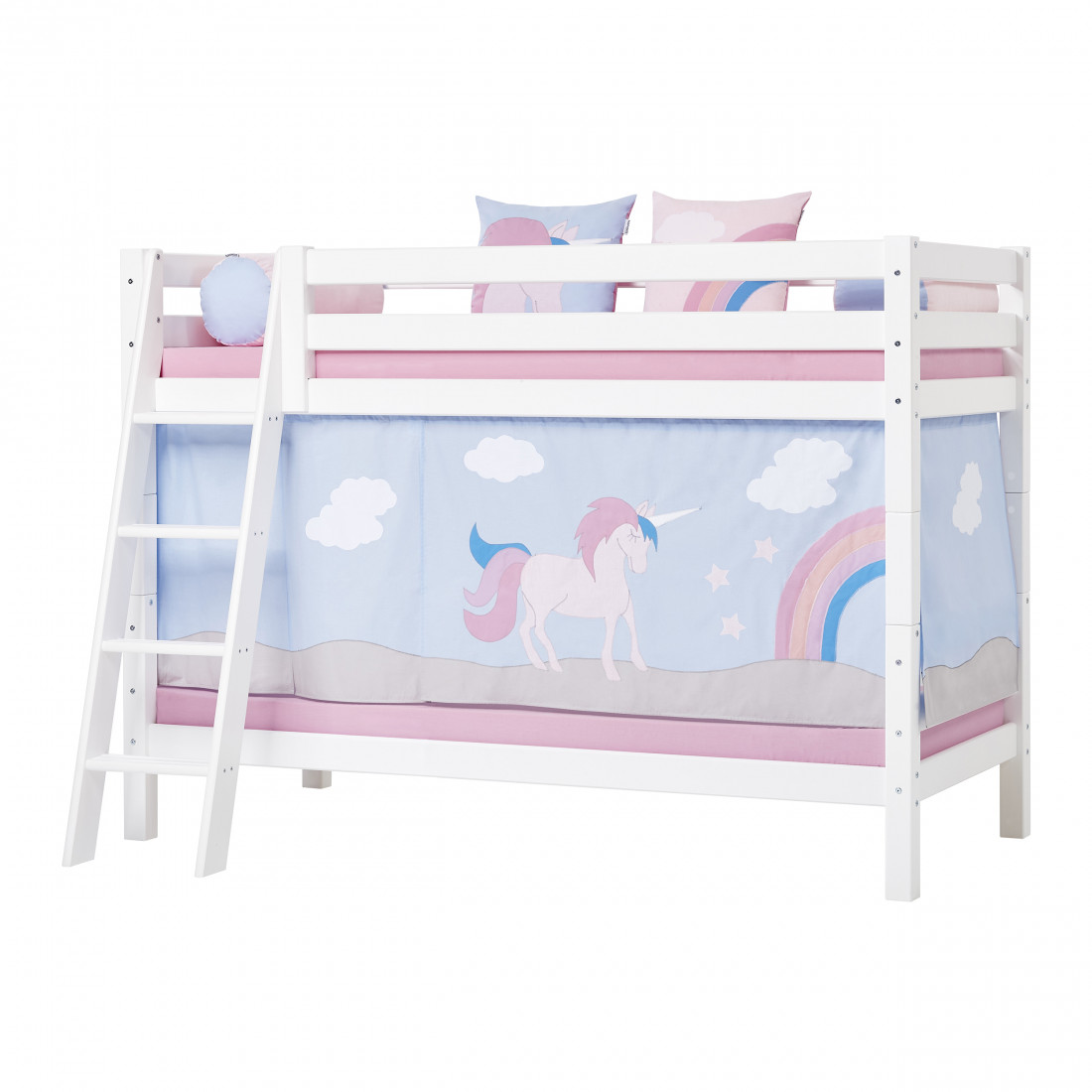 Le lit superposé est parfait pour une chambre commune ou si votre enfant a souvent des satières. La couche inférieure est idéale comme une grotte confortable ou comme un lit de jour. Si vous accrochez un rideau sur le lit, vous pouvez créer la petite grotte la plus cozieuse - et peut-être le décorer avec des fêtes, des photos de jolies, un matelas, des oreillers et plus encore.