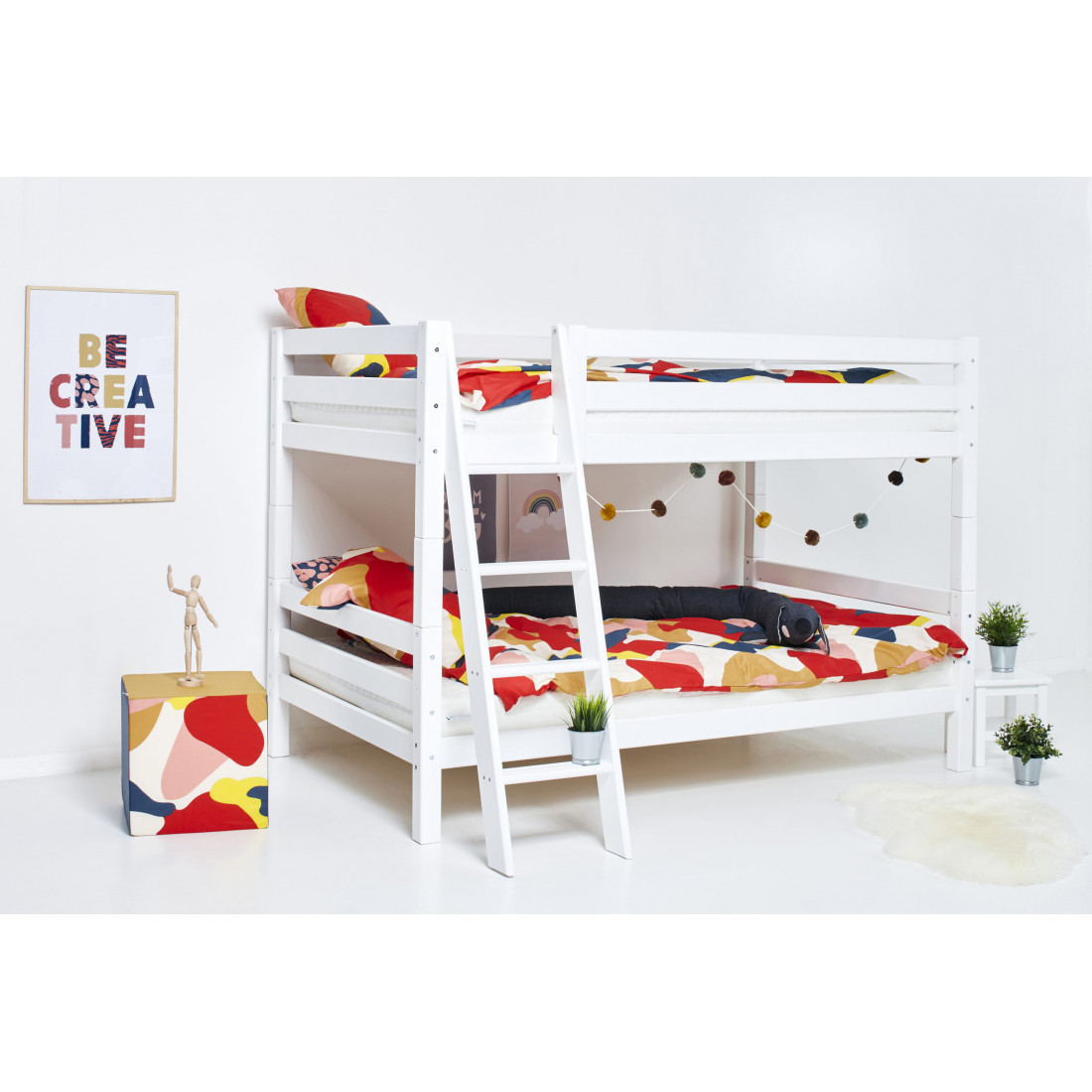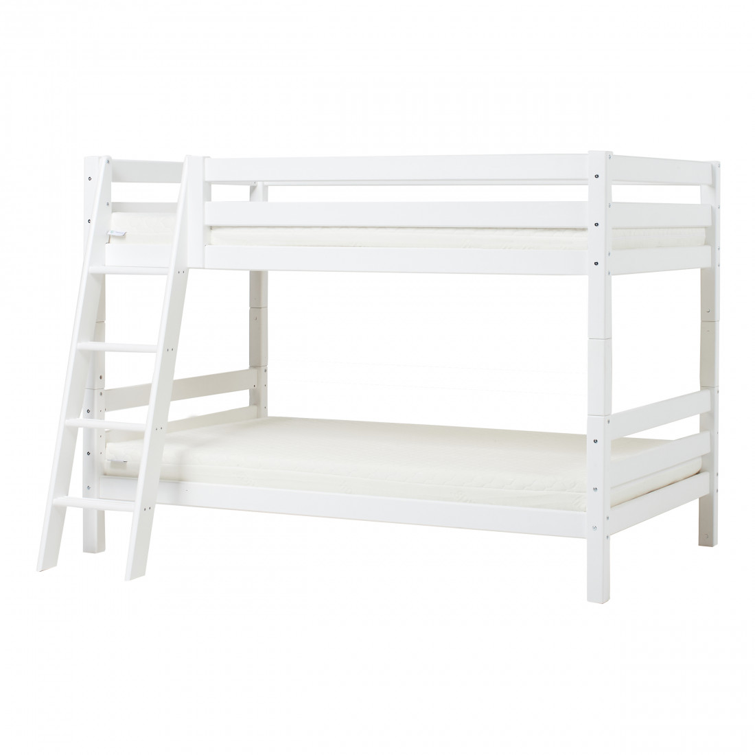Le lit superposé Premium Hoppekids à 120x200cm avec une échelle inclinée est un lit pour enfants pour deux en pin nordique solide, attribué à l'écolabel nordique. La hauteur sous le lit est respectivement de 20 et 108 cm, la hauteur entre le premier et le deuxième lit est de 78 cm. Hoppekids Premium est un système de lit flexible et durable avec un confort maximum et la plus grande attention possible à la sécurité. Ajouté à ceci est sa stabilité et sa durabilité, ainsi que la large gamme de modules et d'accessoires. La série est basée sur le lit junior. Vous pouvez modifier le lit selon les besoins en utilisant divers modules et accessoires tels que des échelles ou des diapositives. Grâce à sa flexibilité et à sa durabilité, la prime est idéale pour être transmise à des frères et sœurs plus jeunes et se sent toujours comme un lit neuf et unique pour vos enfants. Les avantages importants de la prime en un coup d'œil: - Garantie de toute la vie contre les défauts de fabrication - Garantie de disponibilité de cinq ans sur les accessoires et les modules - Construction particulièrement stable - Sécurité maximale due à des côtés de lit extra-élevés - plus de confort en raison du cadre à roulettes ou du cadre à lattes à rouleau - Système modulaire unique - (presque) possibilités sans fin - attribué l'épaisseur de l'écolabelle Nordic: 65x65mm - Max. Hauteur de matelas pour hophekids Cots Premium: 12cm