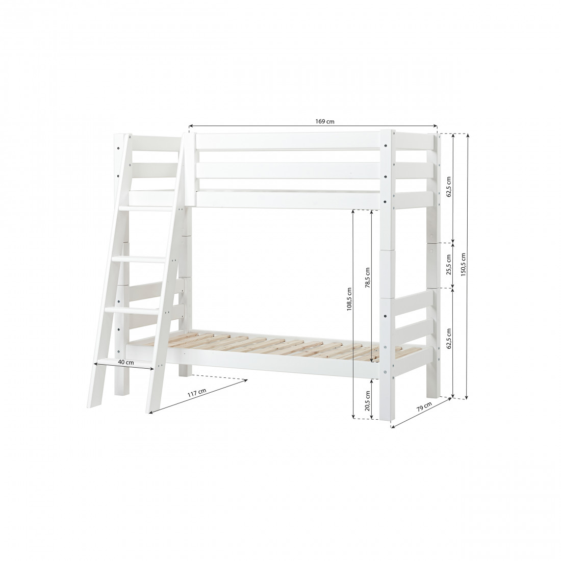 Lit superposé Premium 70x160cm avec échelle inclinée, blanc