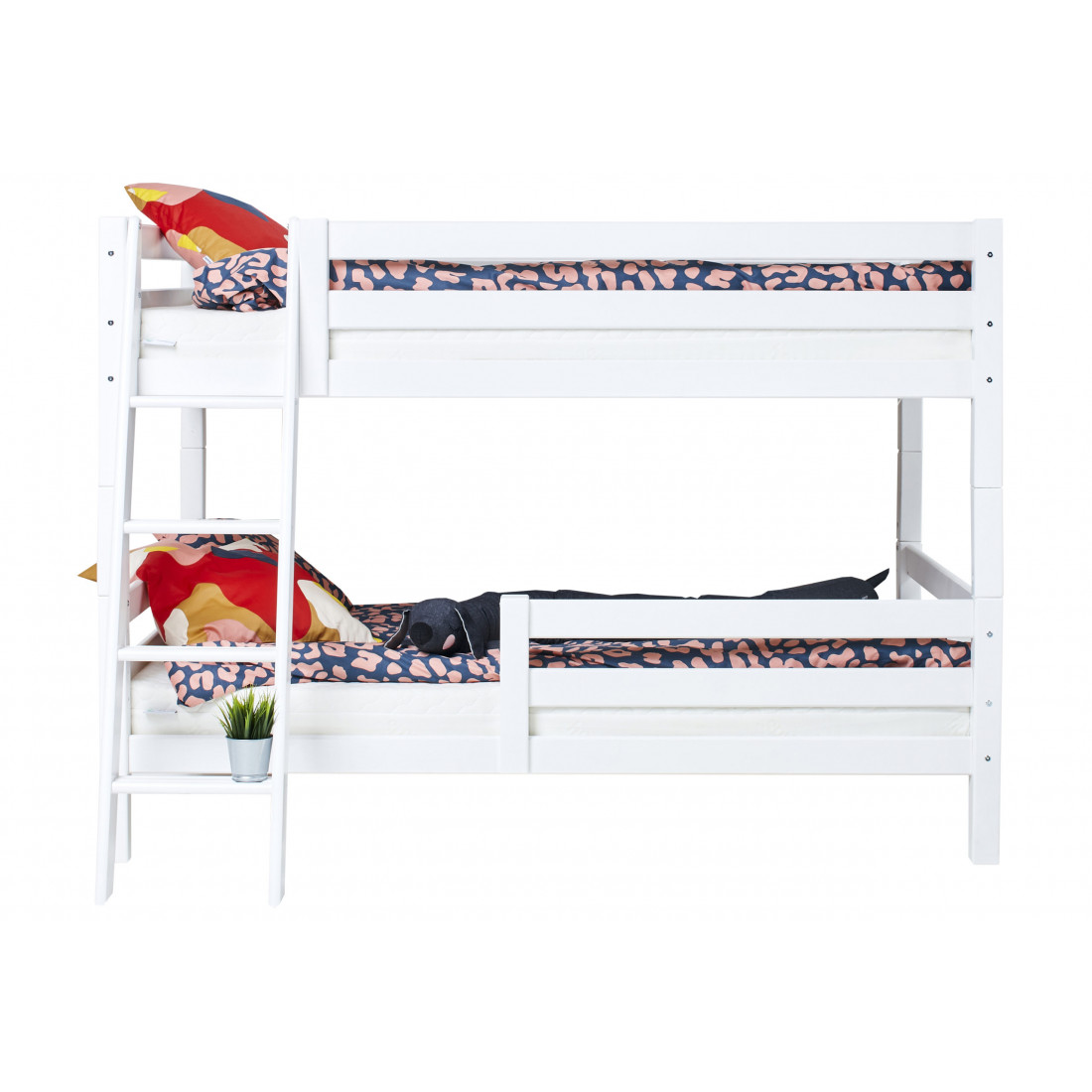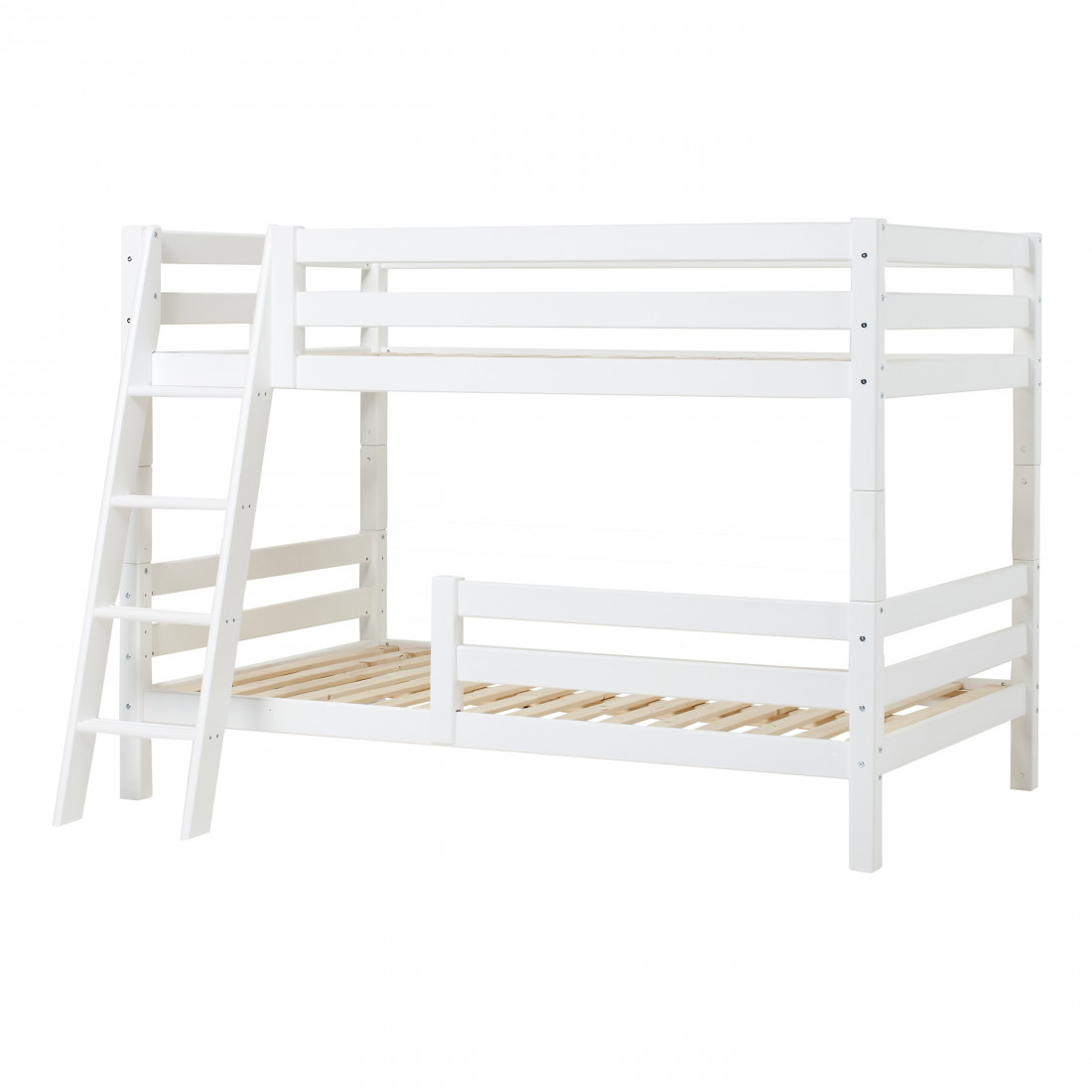 Lit superposé avec échelle inclinable et 120 x 200 - Blanc