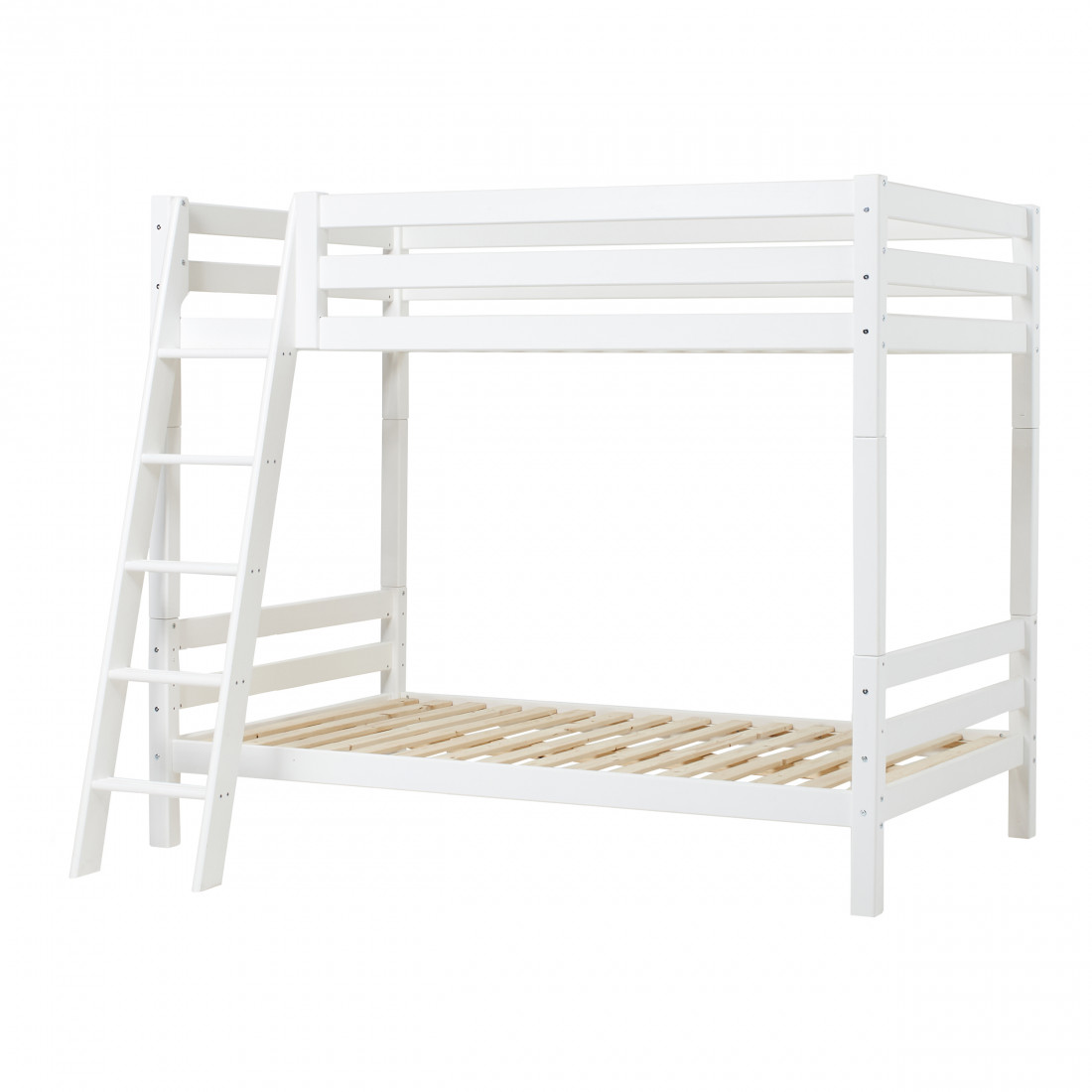 Lit superposé avec échelle inclinée 120 x 200 - blanc