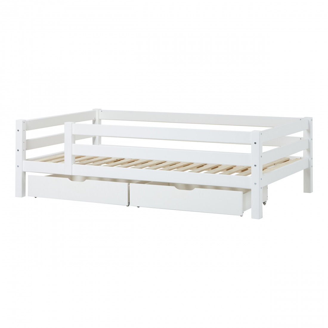 Le lit Junior Hoppekids Premium en 120x200cm avec un rail de sécurité supplémentaire Tout autour est un lit d'enfant classique en pin nordique solide, attribué à l'écolabel nordique. C'est la base de nombreuses possibilités de conversion et d'extension dans la gamme de lit Premium Hoppekids Premium Kids. Premium est un système de lit flexible et durable avec le plus grand confort et la plus grande attention possible à la sécurité. De plus, il offre une stabilité et une durabilité ainsi qu'une large gamme de modules et d'accessoires. La série est basée sur le lit junior. En utilisant divers modules et accessoires tels que des échelles ou des diapositives, vous pouvez modifier le lit selon vos besoins. Grâce à sa flexibilité et à sa durabilité, la prime est idéale pour être transmise à des frères et sœurs plus jeunes et se sent toujours comme un lit neuf et unique pour vos enfants. Les avantages importants de la prime en un coup d'œil: - Garantie tout au long de la vie contre les défauts de fabrication - Garantie de disponibilité de cinq ans sur les accessoires et les modules - une construction particulièrement stable - Sécurité maximale due à des côtés de lit extra-haut - plus de confort en raison de la structure de lattes optionnelles - Système modulaire unique - (presque) possibilités infinies - attribuée à l'écolabel nordique