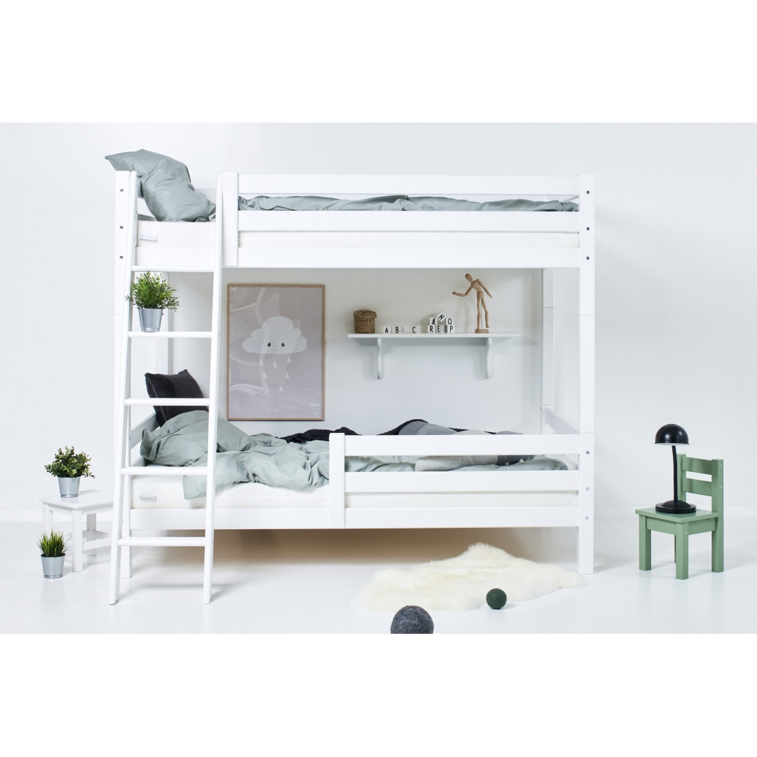 Premium High Lit superposé avec échelle inclinée et 1/2 120 x 200 - Blanc