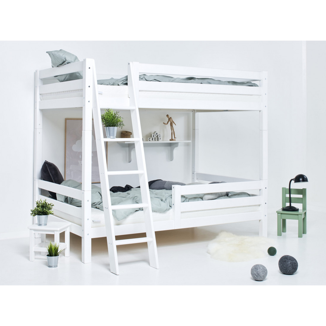 Le lit Hoppekids Premium High Lit superposé à 120x200cm avec une échelle inclinée est un lit pour enfants pour deux, si vous voulez aller un peu plus haut. Pour une sécurité supplémentaire, il existe également une protection contre l'automne en bas. Fait de bois de pin nordique solide et a attribué le cygne nordique écolabel. La hauteur sous le lit est de 20 ou 135 cm, la hauteur entre le premier et le deuxième lit est de 105 cm. Hoppekids Premium est un système de lit flexible et durable avec un confort maximum et la plus grande attention possible à la sécurité. Ajouté à ceci est sa stabilité et sa durabilité, ainsi que la large gamme de modules et d'accessoires. La série est basée sur le lit junior. Vous pouvez modifier le lit selon les besoins en utilisant divers modules et accessoires tels que des échelles ou des diapositives. Grâce à sa flexibilité et à sa durabilité, la prime est idéale pour être transmise à des frères et sœurs plus jeunes et se sent toujours comme un lit neuf et unique pour vos enfants. Les avantages importants de la prime en un coup d'œil: - Garantie de toute la vie contre les défauts de fabrication - Garantie de disponibilité de cinq ans sur les accessoires et les modules - Construction particulièrement stable - Sécurité maximale due à des côtés de lit extra-élevés - plus de confort en raison du cadre à roulettes ou du cadre à lattes à rouleau - Système modulaire unique - (presque) possibilités sans fin - attribué l'épaisseur de l'écolabelle Nordic: 65x65mm - Max. Hauteur de matelas pour hophekids Cots Premium: 12cm