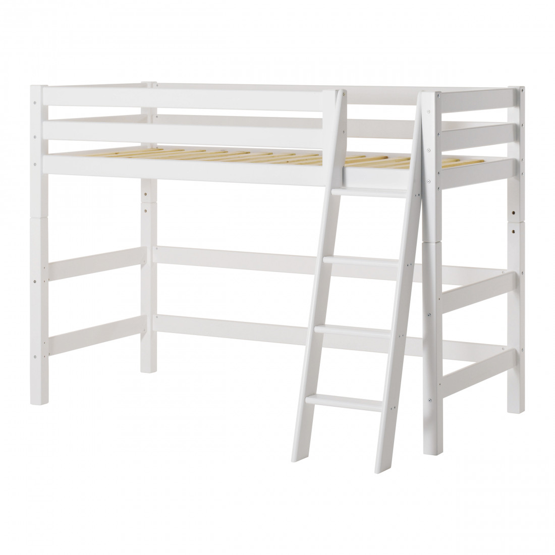 Les échelles de la collection de primes ont des marches profondes et des rainures. Cela rend la grimpe dans les escaliers encore plus sûre. Une échelle oblique pourrait rendre la montée plus facile - parce que l'échelle n'est pas aussi raide - mais cela prendra également plus de place dans la pièce. de