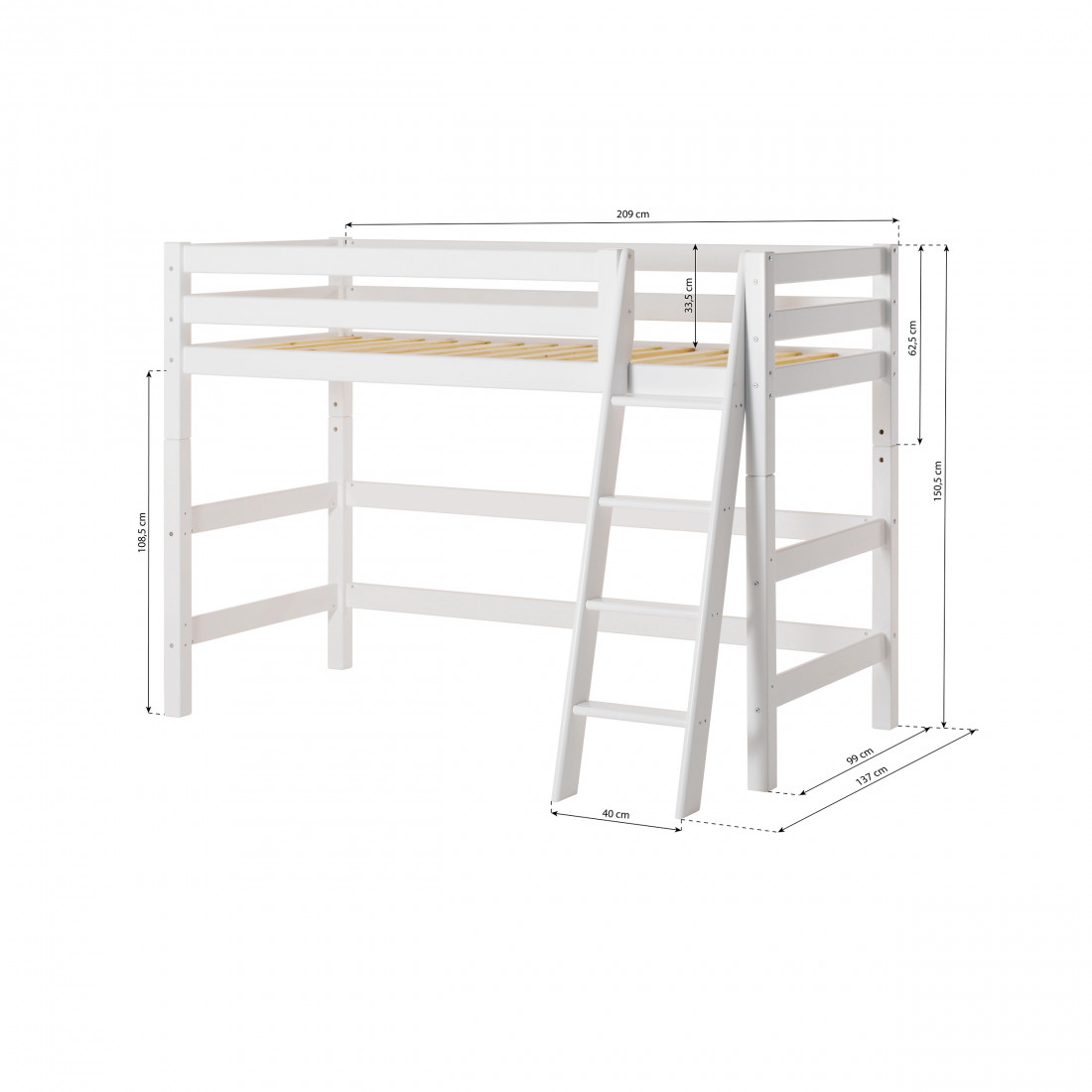 La grande taille 90x200 cm offre beaucoup de place à la croissance et l'enfant peut utiliser le lit jusqu'à ce qu'ils recherchent une salle d'adolescente. La taille permet également à un parent de se coucher à côté de l'enfant, par exemple lors de la lecture des histoires d'attente.
