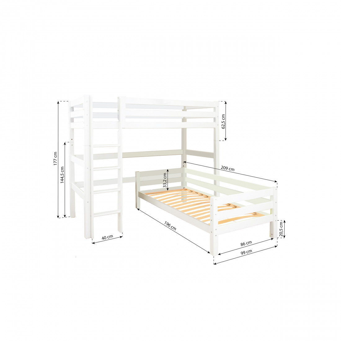 Le sommeil élevé est parfait pour le plus grand enfant, car vous pouvez utiliser l'espace situé sous la zone de jeu, l'espace de travail ou le stockage. Le lit junior est parfait pour les frères et sœurs plus petits, comme un lit de jour ou comme un lit.