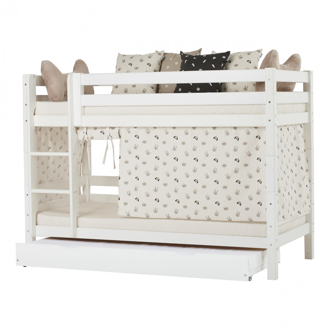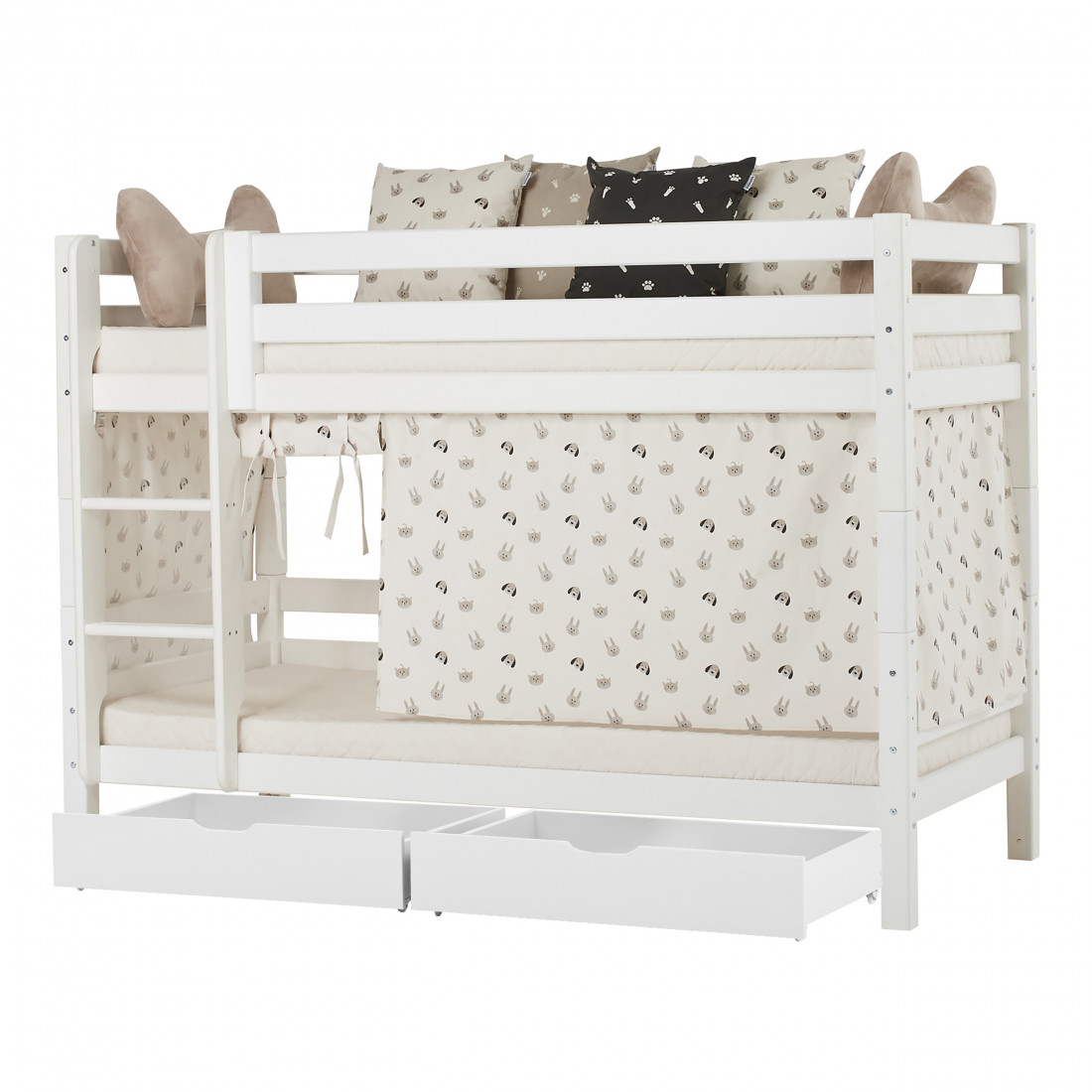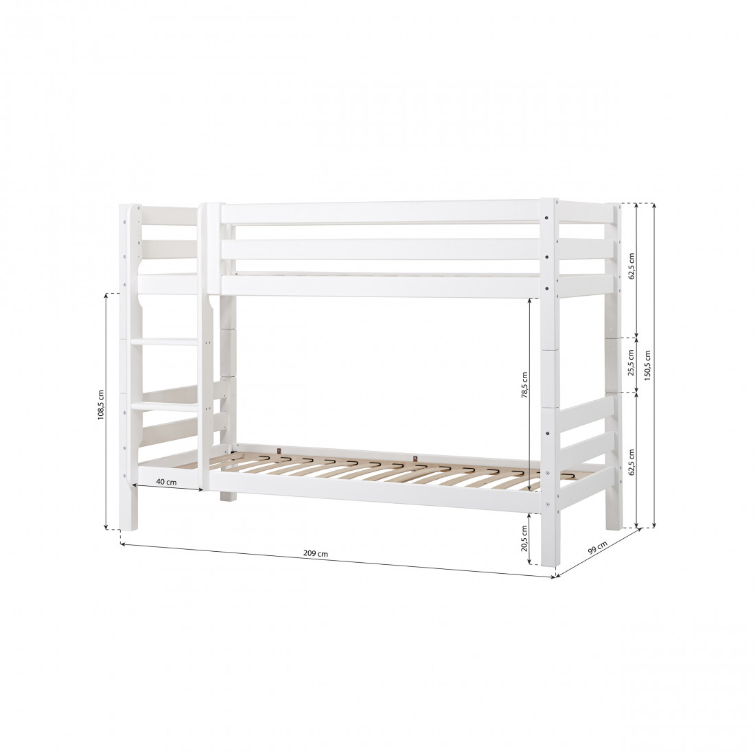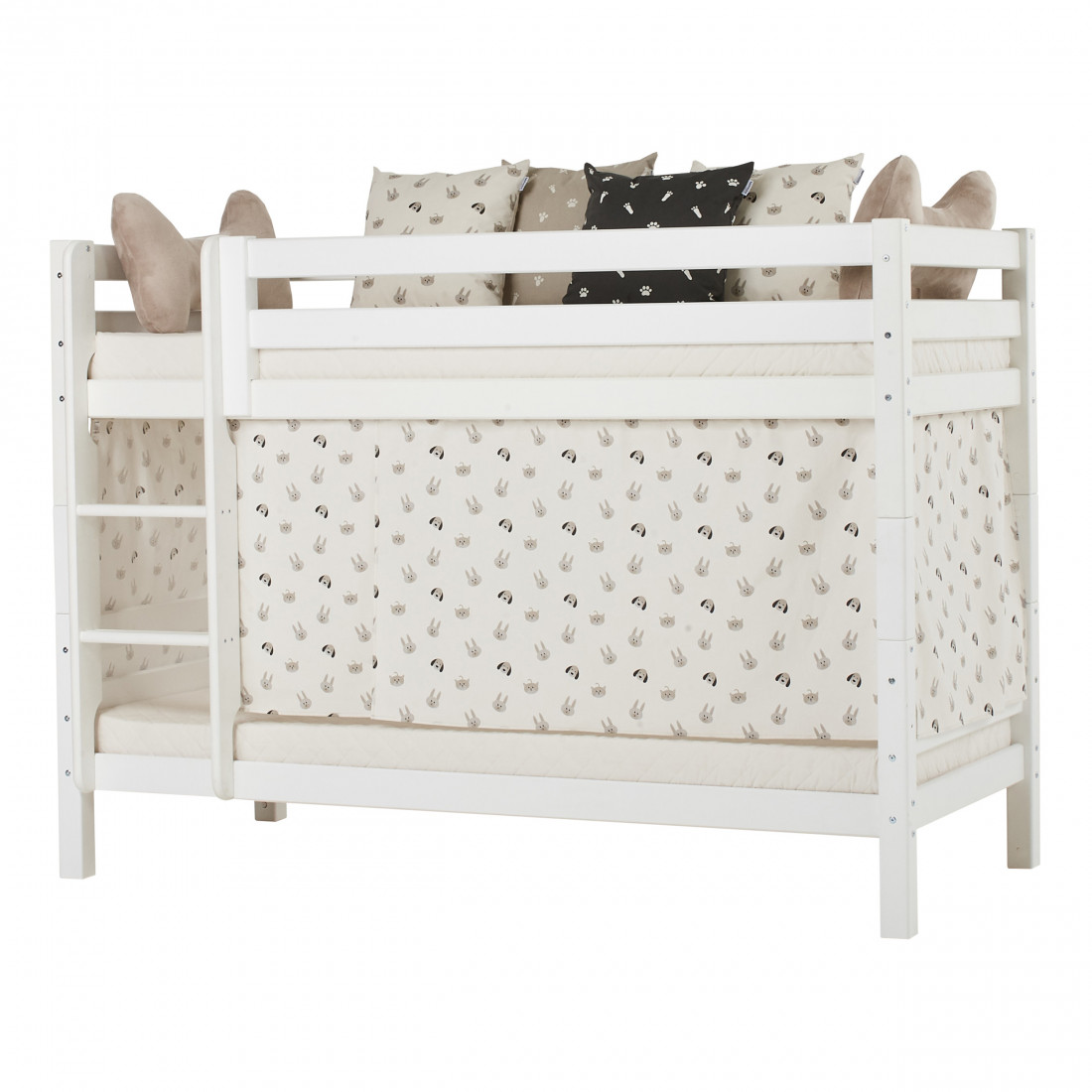 Lit superposé haut de gamme complet taille 90x200 cm de Hoppekids. Ce lit vous donnera plus d'espace de plancher dans la chambre car vous obtenez deux superposés pour l'espace d'un. En dessous de la couche inférieure, il y a beaucoup de place pour le stockage.