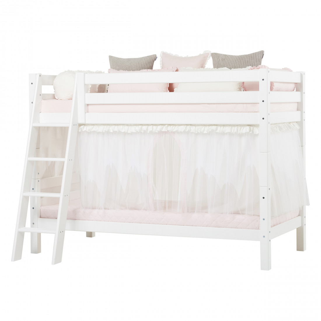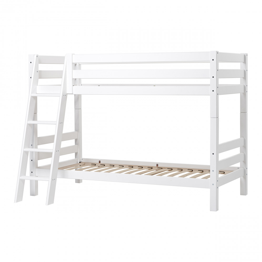 Lit superposé haut de gamme complet taille 90x200 cm de Hoppekids. Ce lit vous donnera plus d'espace de plancher dans la chambre car vous obtenez deux superposés pour l'espace d'un. En dessous de la couche inférieure, il y a beaucoup de place pour le stockage.