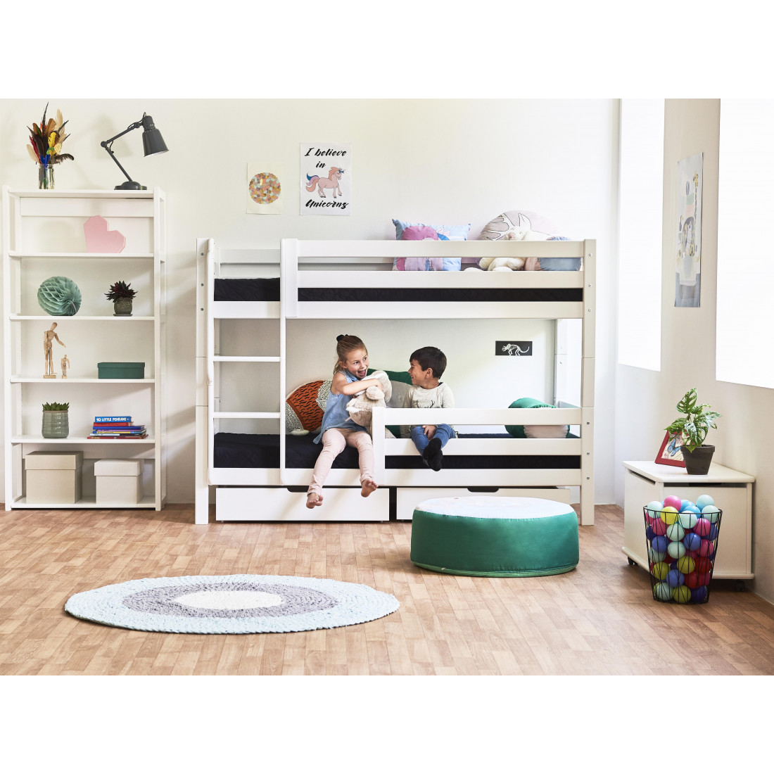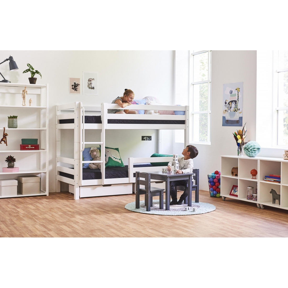 Le lit superposé est parfait pour une chambre commune ou si votre enfant a souvent des satières. La couche inférieure est idéale comme une grotte confortable ou comme un lit de jour. Si vous accrochez un rideau sur le lit, vous pouvez créer la petite grotte la plus cozieuse - et peut-être le décorer avec des fêtes, des photos de jolies, un matelas, des oreillers et plus encore.