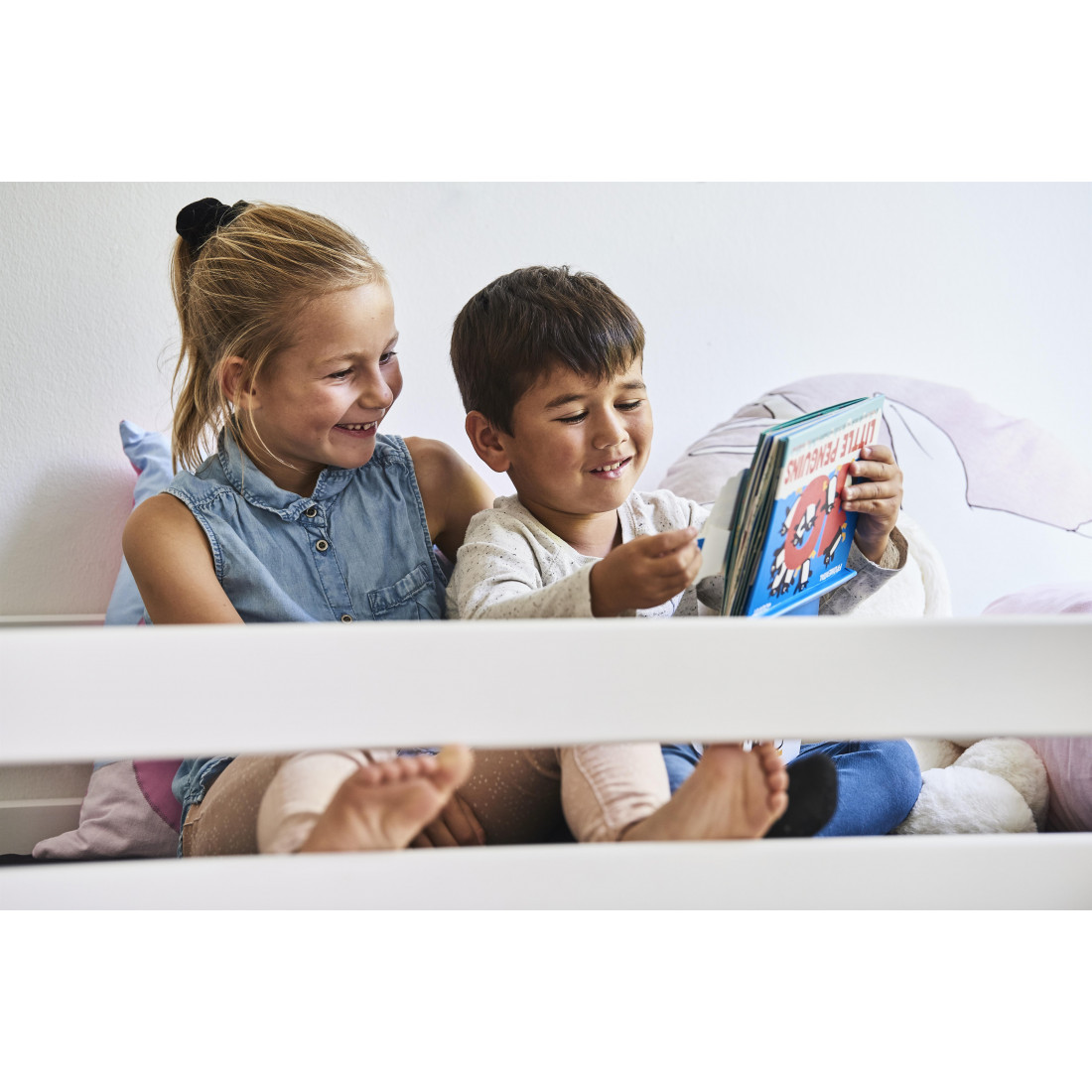 La grande taille 90x200 cm offre beaucoup de place à la croissance et l'enfant peut utiliser le lit jusqu'à ce qu'ils recherchent une salle d'adolescente. La taille permet également à un parent de se coucher à côté de l'enfant, par exemple lors de la lecture des histoires d'attente. Taille 90x200 cm est également la taille qui vous donnera la plus de possibilités de reconstruire le lit à l'avenir - par exemple. dans un lit superposé, un grand dormeur ou un lit hauteur à moitié élevé ou mi-haut.
