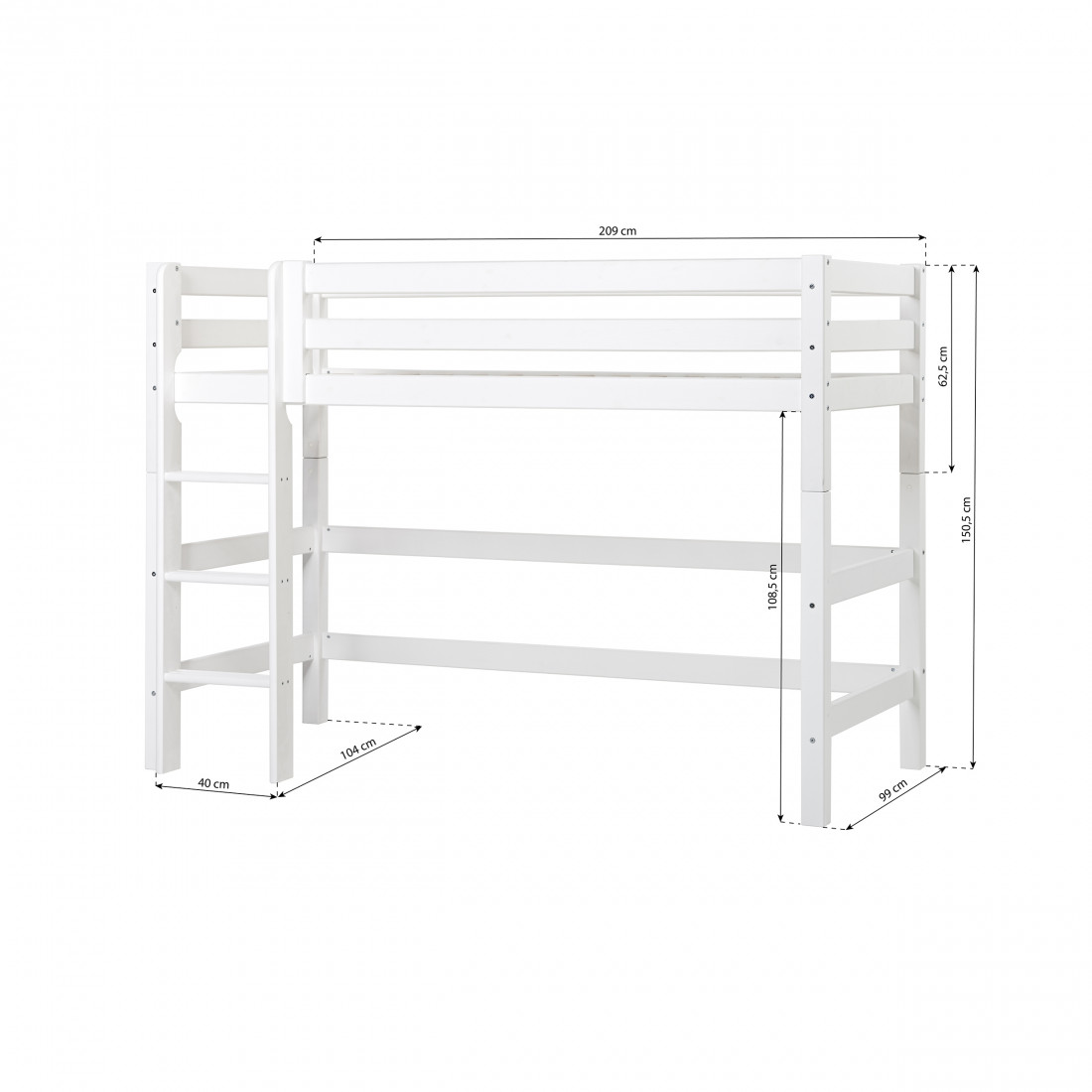 La grande taille 90x200 cm offre beaucoup de place à la croissance et l'enfant peut utiliser le lit jusqu'à ce qu'ils recherchent une salle d'adolescente. La taille permet également à un parent de se coucher à côté de l'enfant, par exemple lors de la lecture des histoires d'attente.