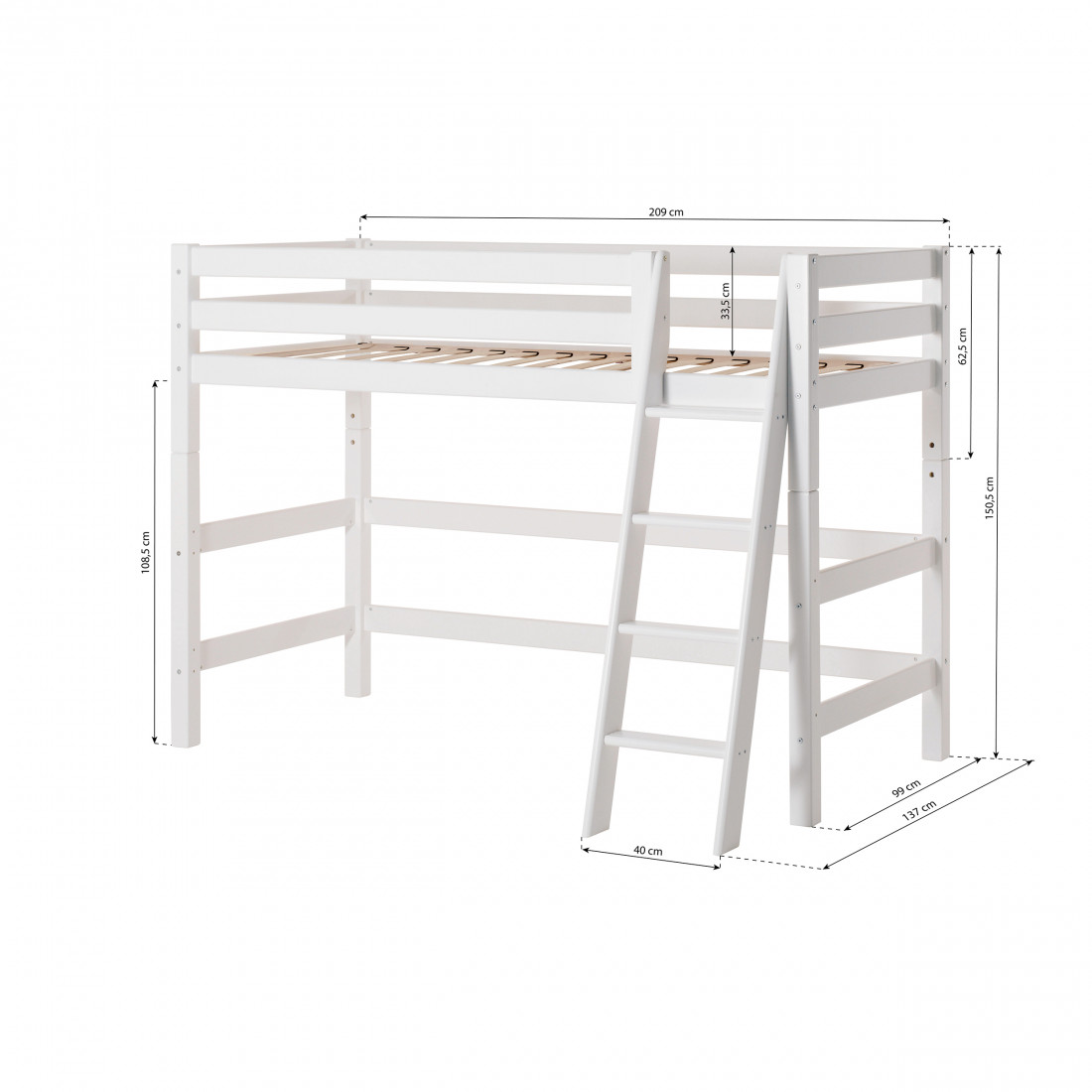 Ce lit est livré avec un cadre de lattes flexible. Les lattes incurvées confèrent un confort et un soutien accru, car les lattes s'adaptent aux points de pression du corps de votre enfant. Cela aide à maintenir une colonne vertébrale tout en dormant - même pendant les poussées de croissance.